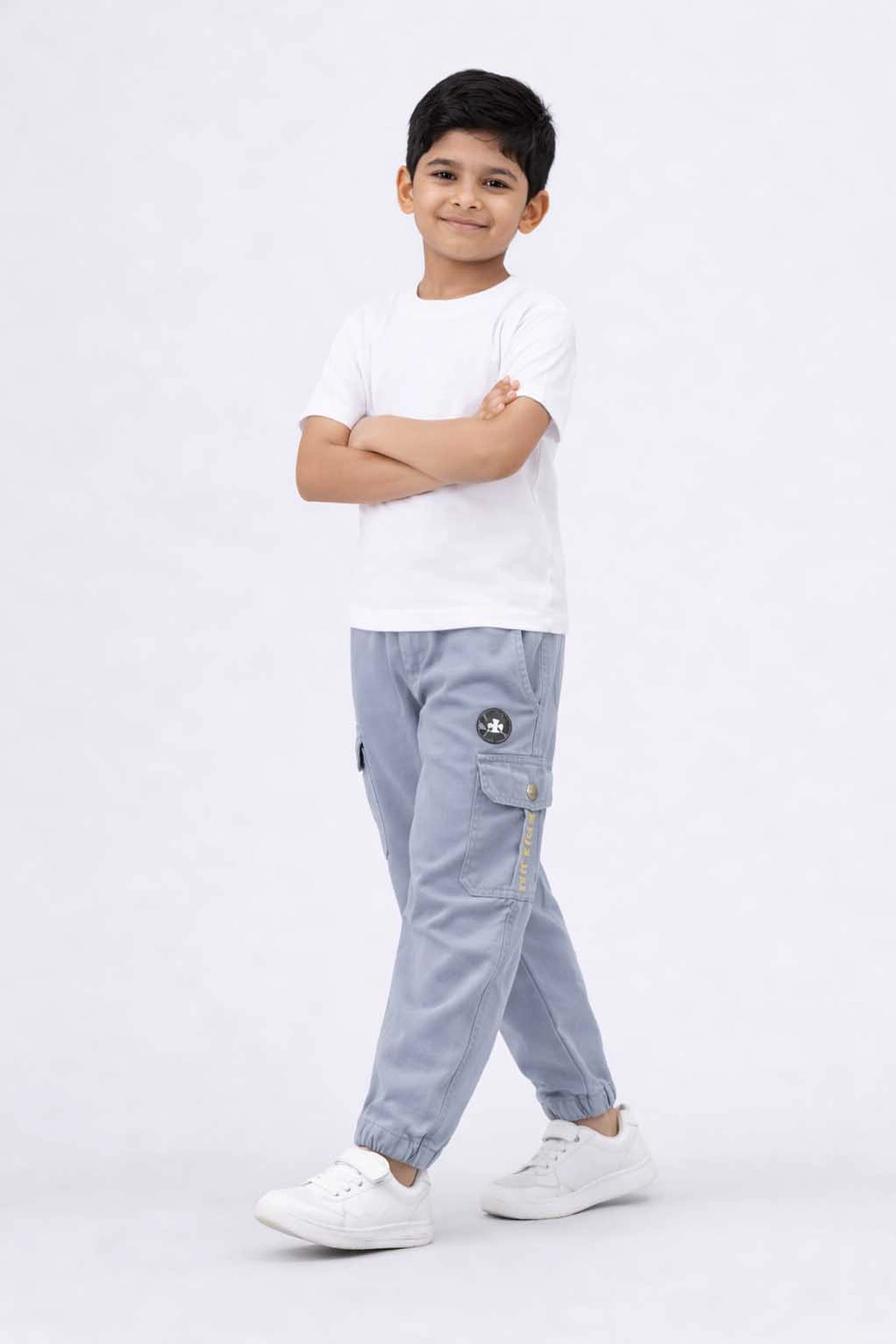 INTRODUCE YOUR YOUNG ONES TO COMFORT AND STYLE WITH OUR KIDS BOYS COTTON CARGO TRACK PANTS & JOGGERS. MADE FROM SOFT, BREATHABLE COTTON, THESE JOGGERS ARE DESIGNED FOR ACTIVE KIDS WHO LOVE TO PLAY AND EXPLORE. THE VERSATILE CARGO POCKETS PROVIDE AMPLE STORAGE FOR LITTLE TREASURES, WHILE THE ELASTIC WAISTBAND ENSURES A SNUG FIT. IDEAL FOR CASUAL WEAR, SPORTS ACTIVITIES, OR LOUNGING AT HOME, THESE TRACK PANTS COMBINE DURABILITY WITH TRENDY DESIGN. AVAILABLE IN A VARIETY OF SIZES AND COLORS, THEY MAKE THE PERFECT ADDITION TO YOUR CHILD'S WARDROBE. EXPERIENCE THE ULTIMATE IN COMFORT AND FUNCTIONALITY—PERFECT FOR ANY ADVENTURE!