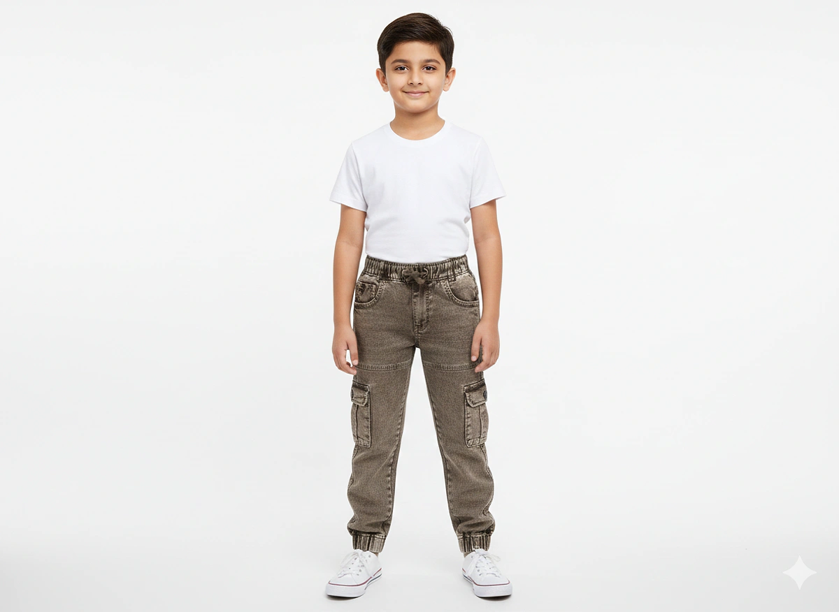 KIDS BOYS POLYCOTTON CARGO REGULAR LENGTH TRACK PANTS & JOGGERS