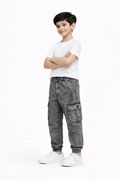 KIDS BOYS POLYCOTTON CARGO REGULAR LENGTH TRACK PANTS & JOGGERS