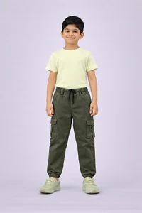 KIDS BOYS POLYCOTTON CARGO REGULAR LENGTH TRACK PANTS & JOGGERS