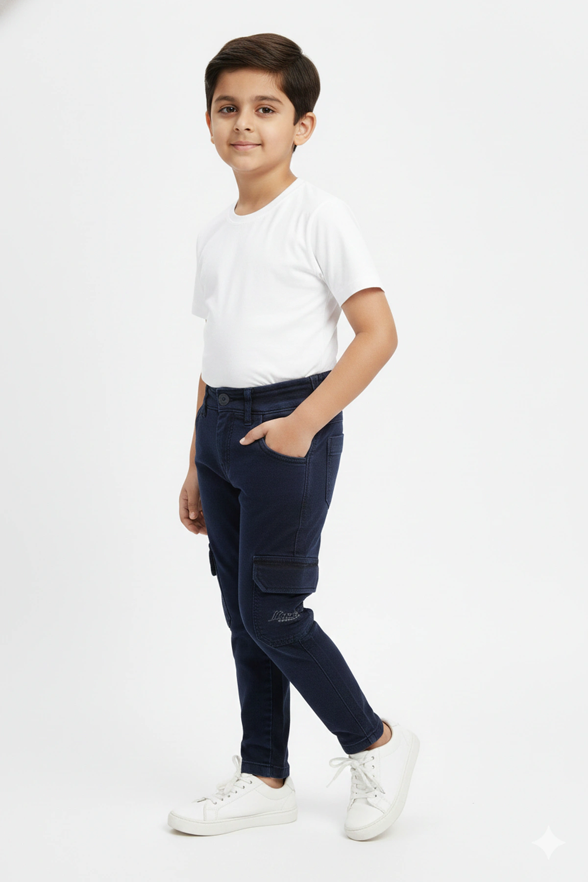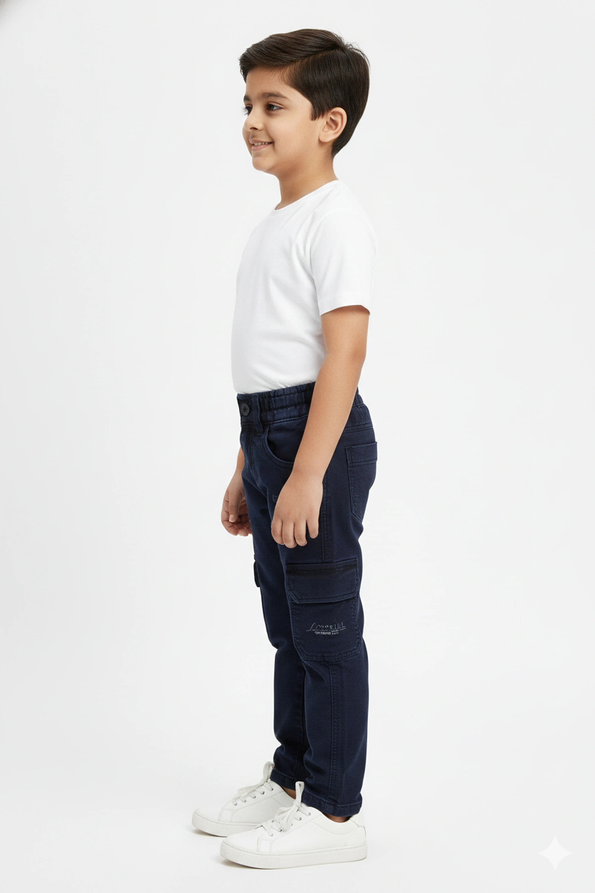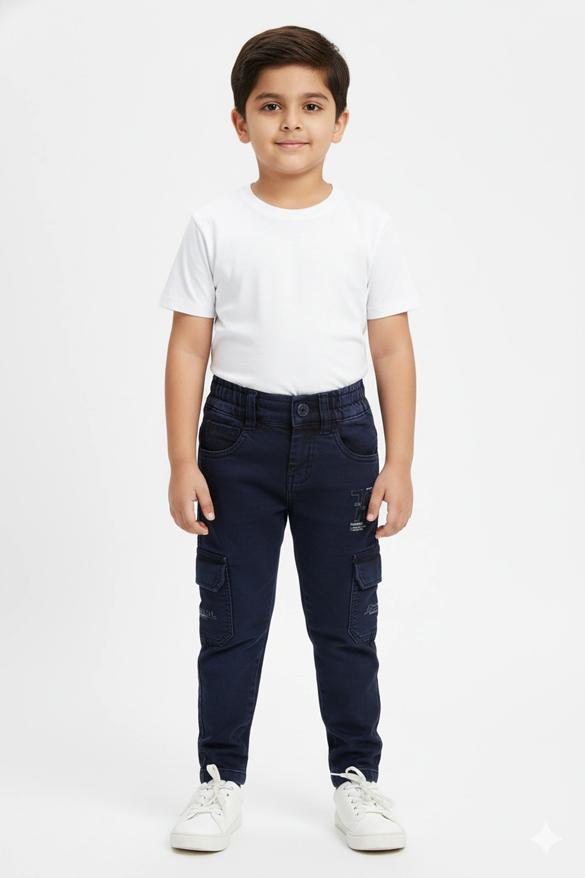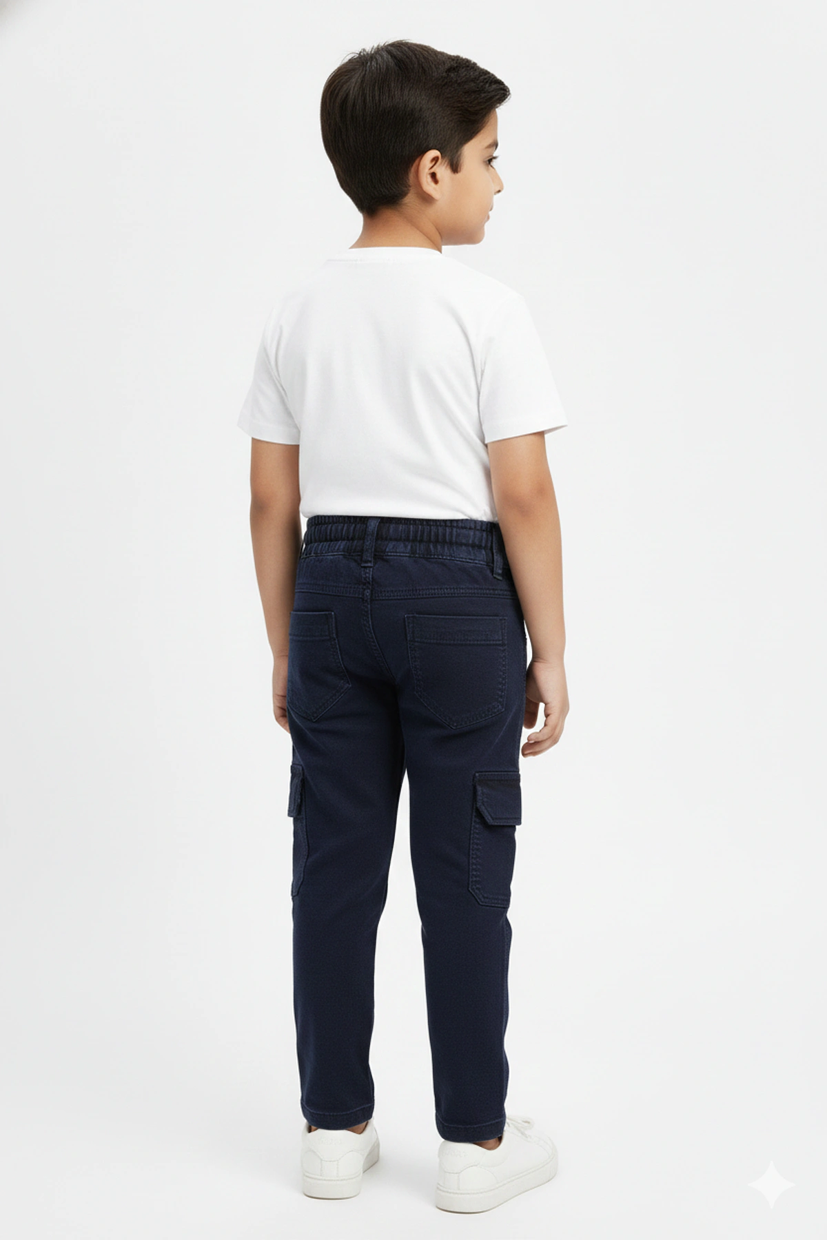 KIDS BOYS POLYCOTTON CARGO REGULAR LENGTH TRACK PANTS & JOGGERS
