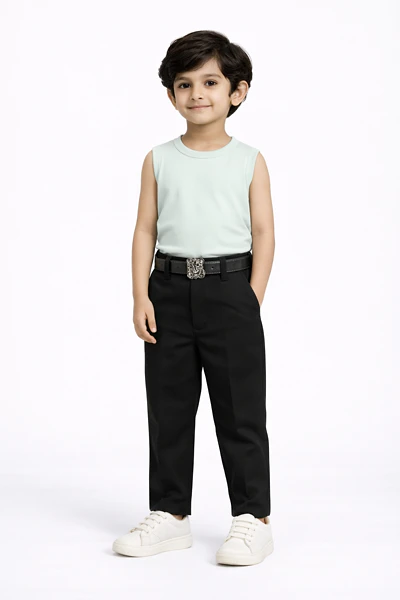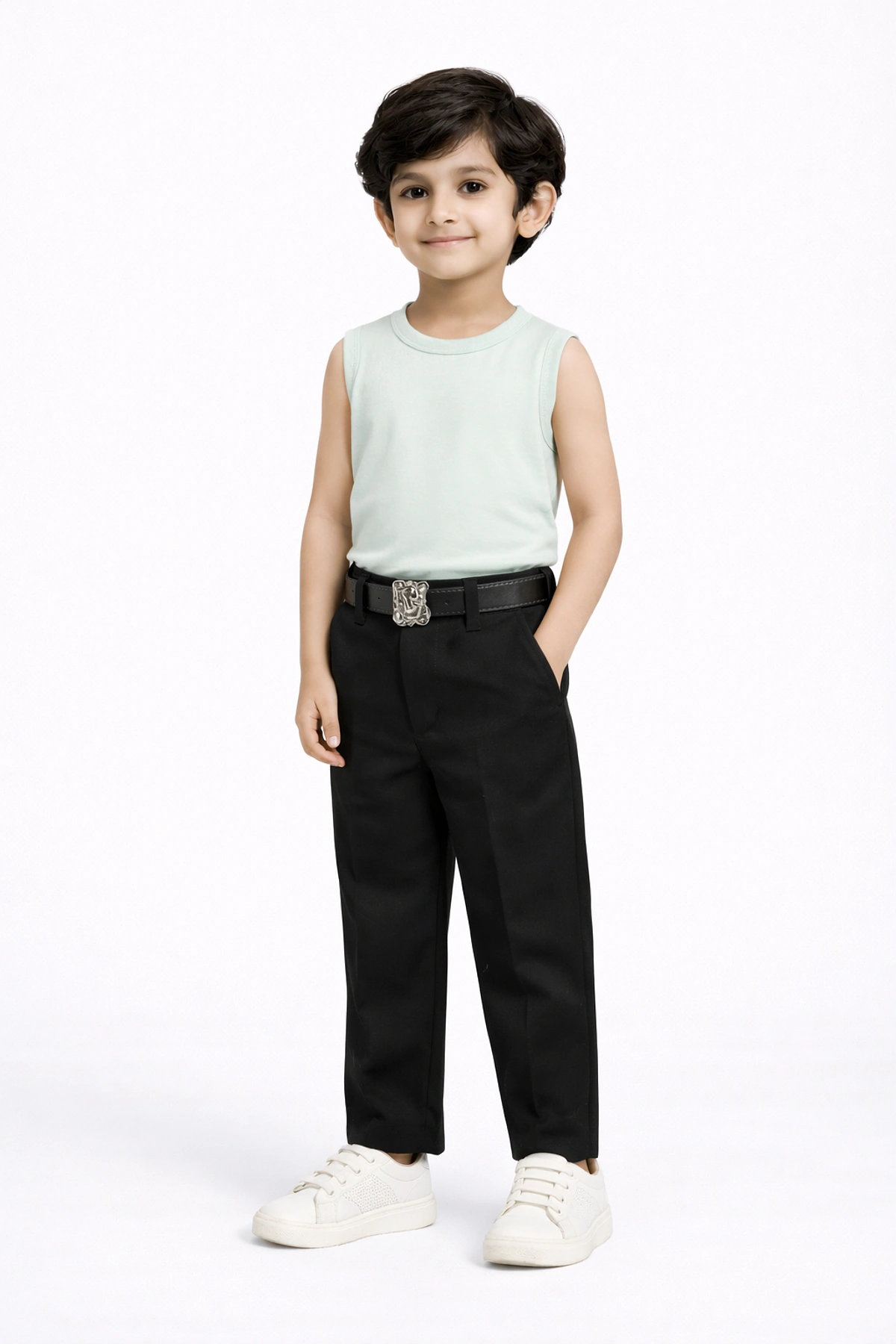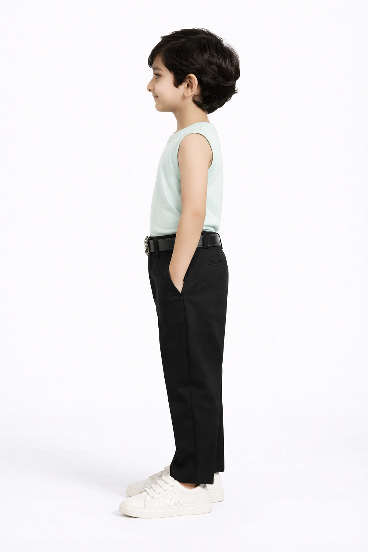 KIDS BOYS POLYCOTTON SOLID REGULAR LENGTH CASUAL TROUSERS