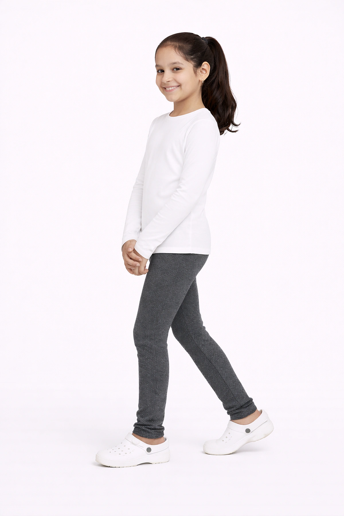 KIDS GIRLS IMPORTED SOLID REGULAR SLEEVE FULL LENTH TSHIRTS & TOPS