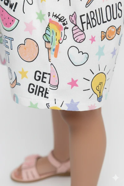 KIDS GIRLS INTERLOCK FROCK REGULAR SLEEVE REGULAR LENTH DRESSES