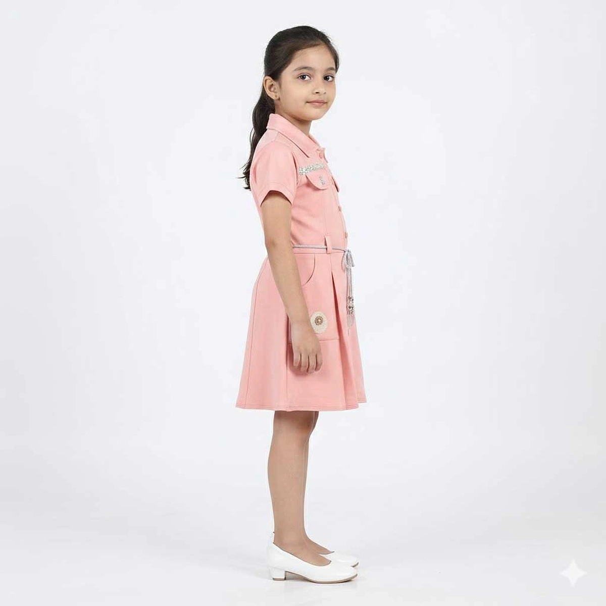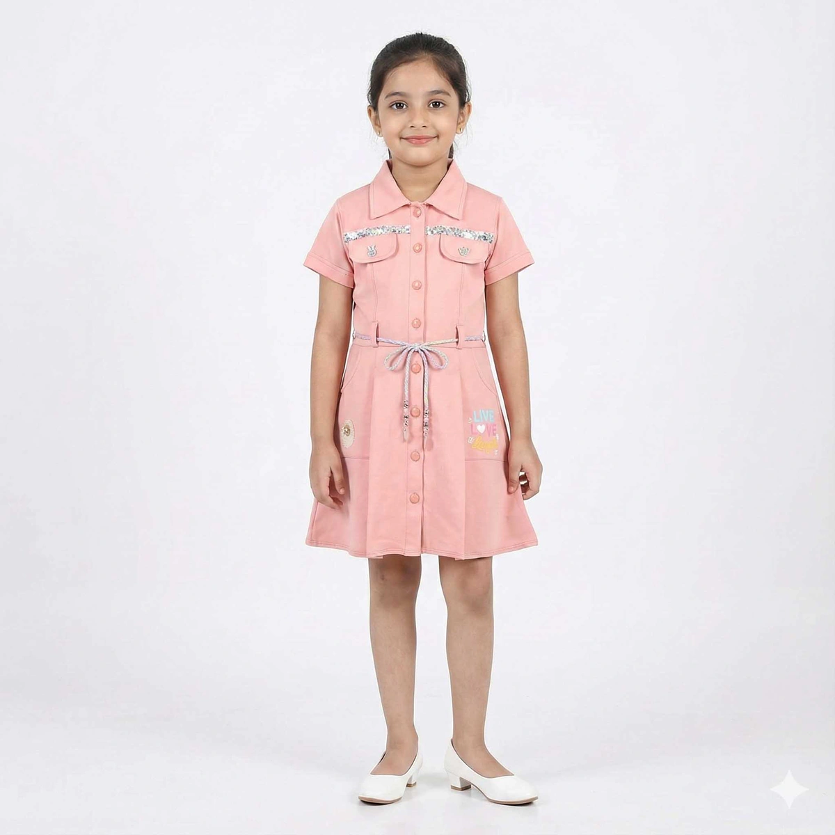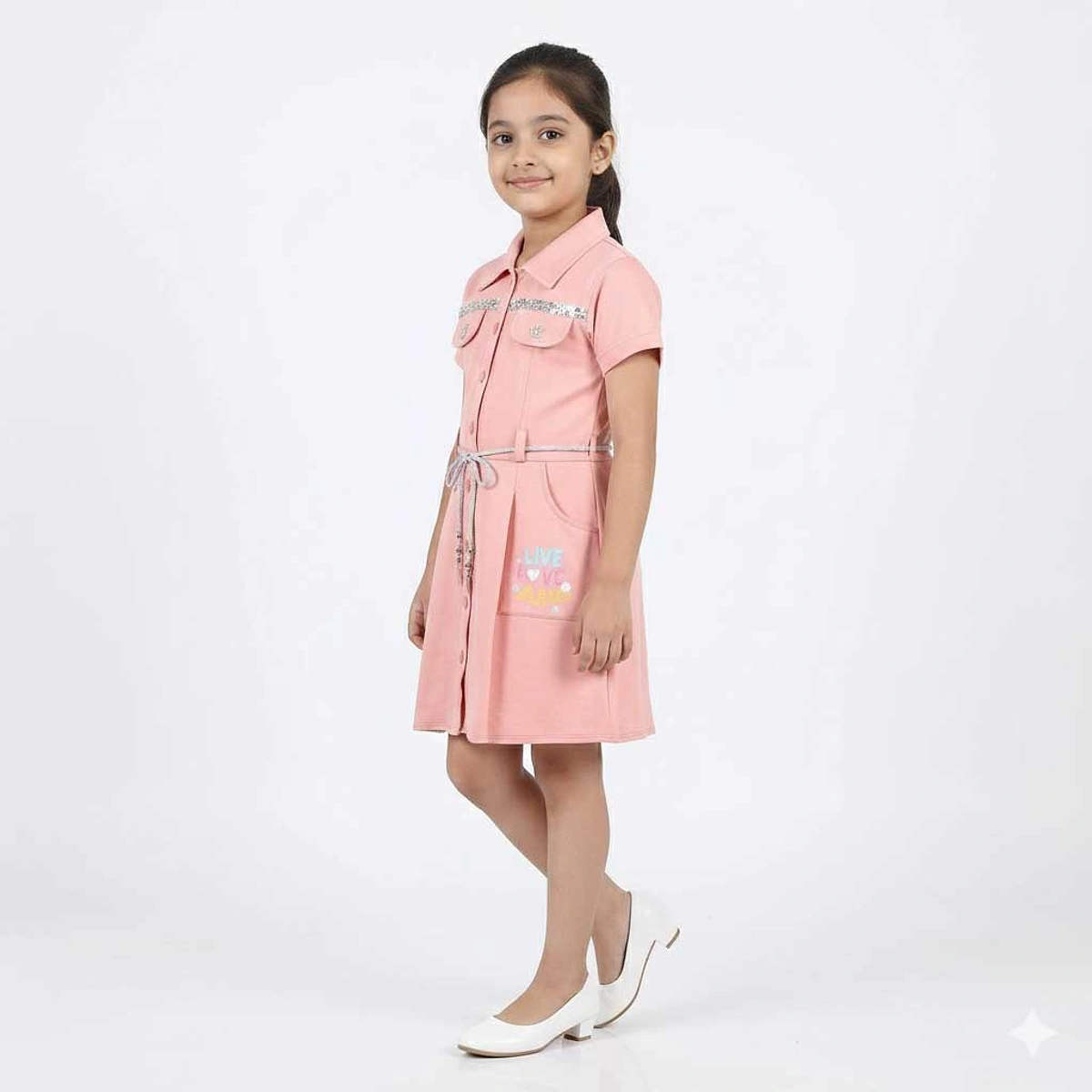 KIDS GIRLS INTERLOCK FROCK REGULAR SLEEVE REGULAR LENTH DRESSES