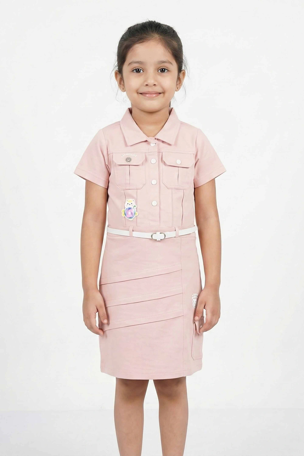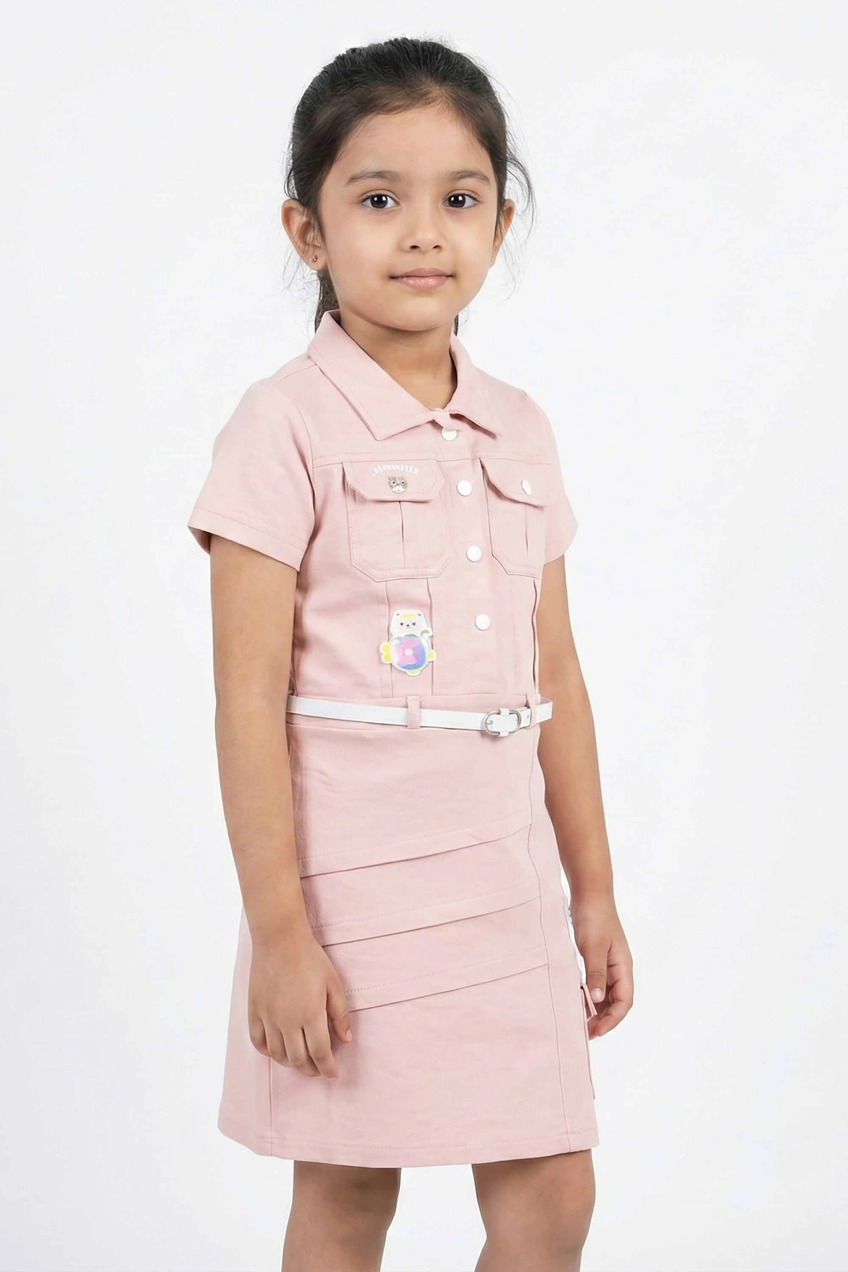 KIDS GIRLS INTERLOCK FROCK REGULAR SLEEVE REGULAR LENTH DRESSES