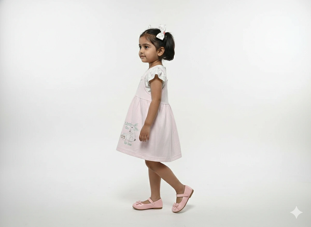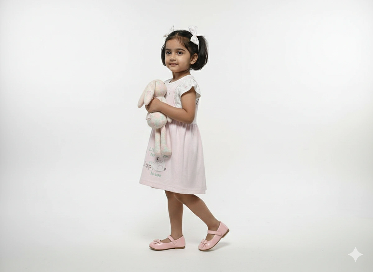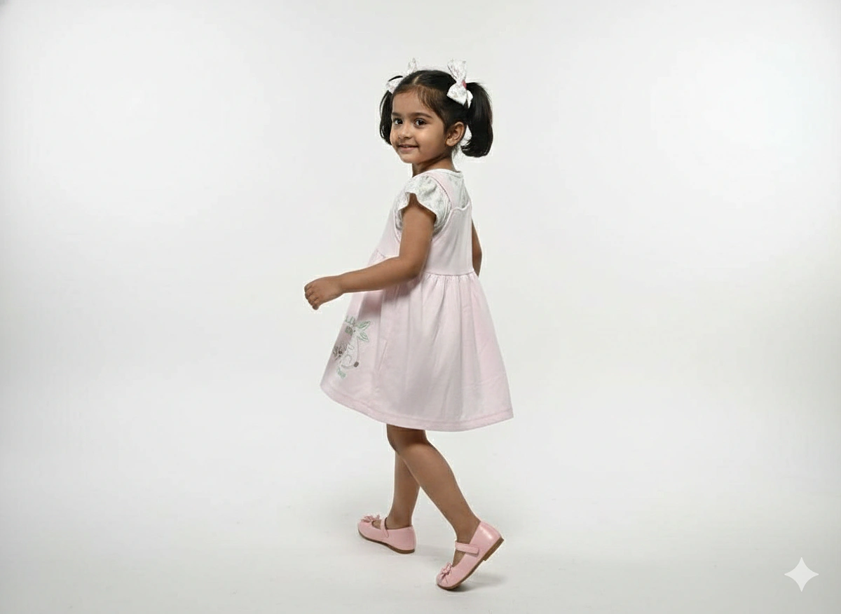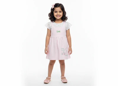 KIDS GIRLS INTERLOCK FROCK REGULAR SLEEVE REGULAR LENTH DRESSES