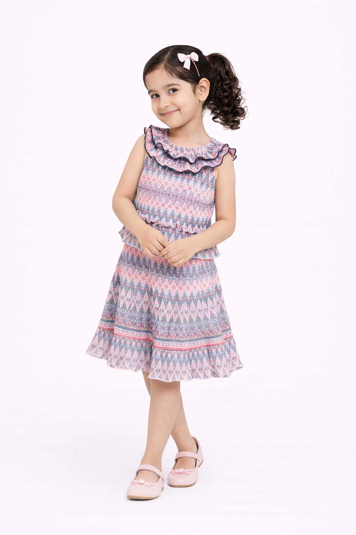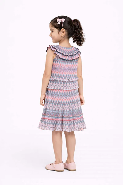 KIDS GIRLS INTERLOCK FROCK REGULAR SLEEVE REGULAR LENTH DRESSES