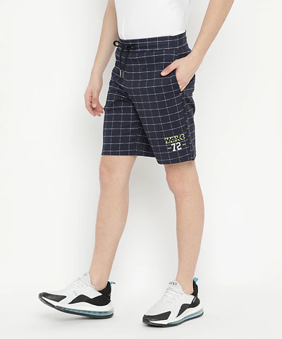 Men Checkered Bermudas (Navy Blue)