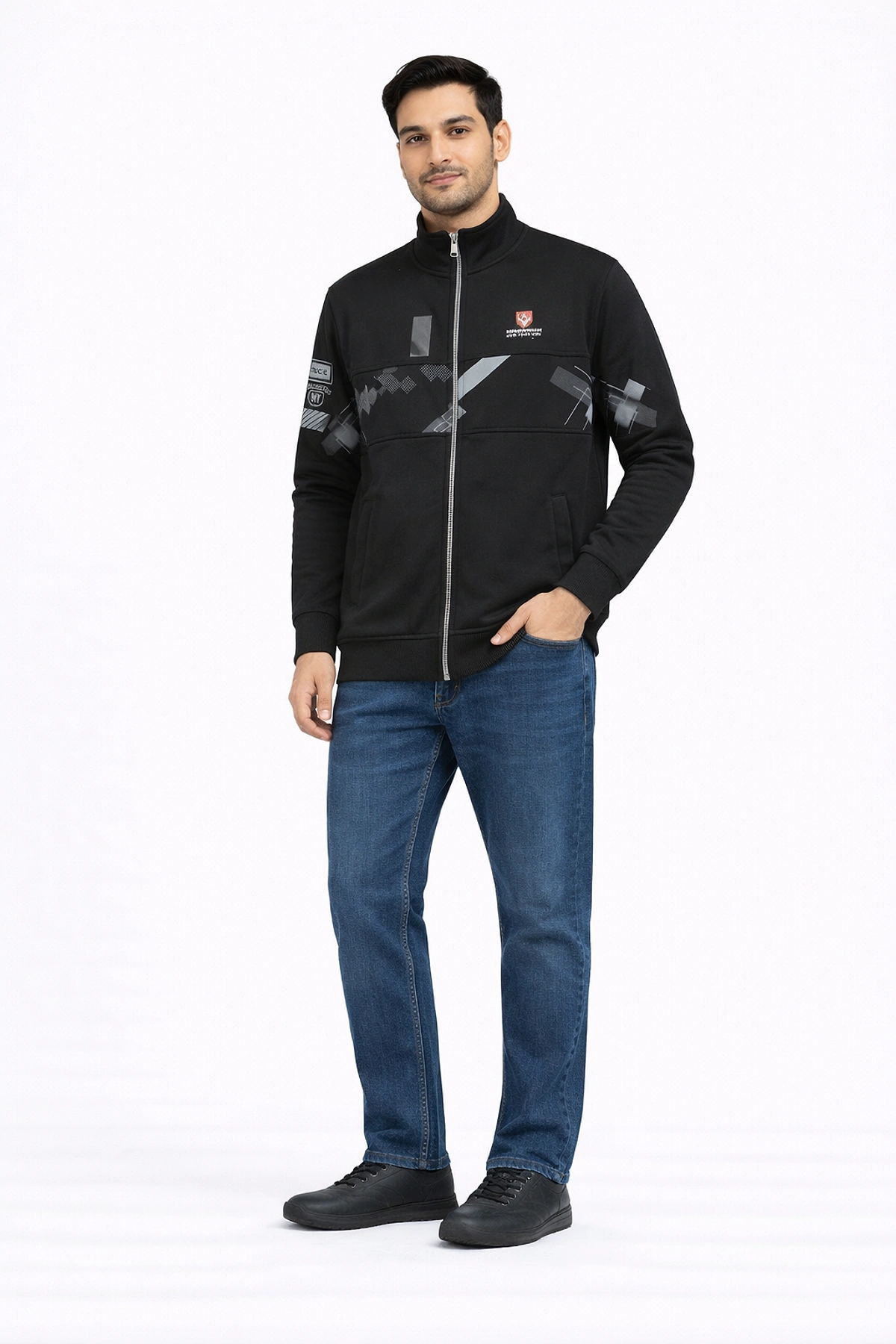 Men Full Sleeves Printed Formal Shirt (Navy Blue)