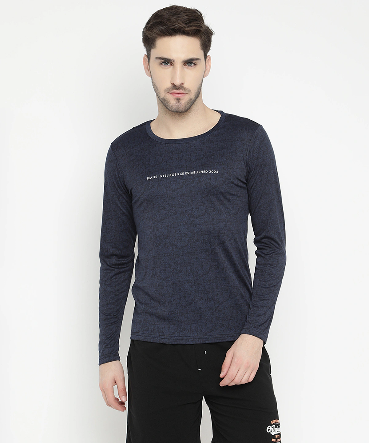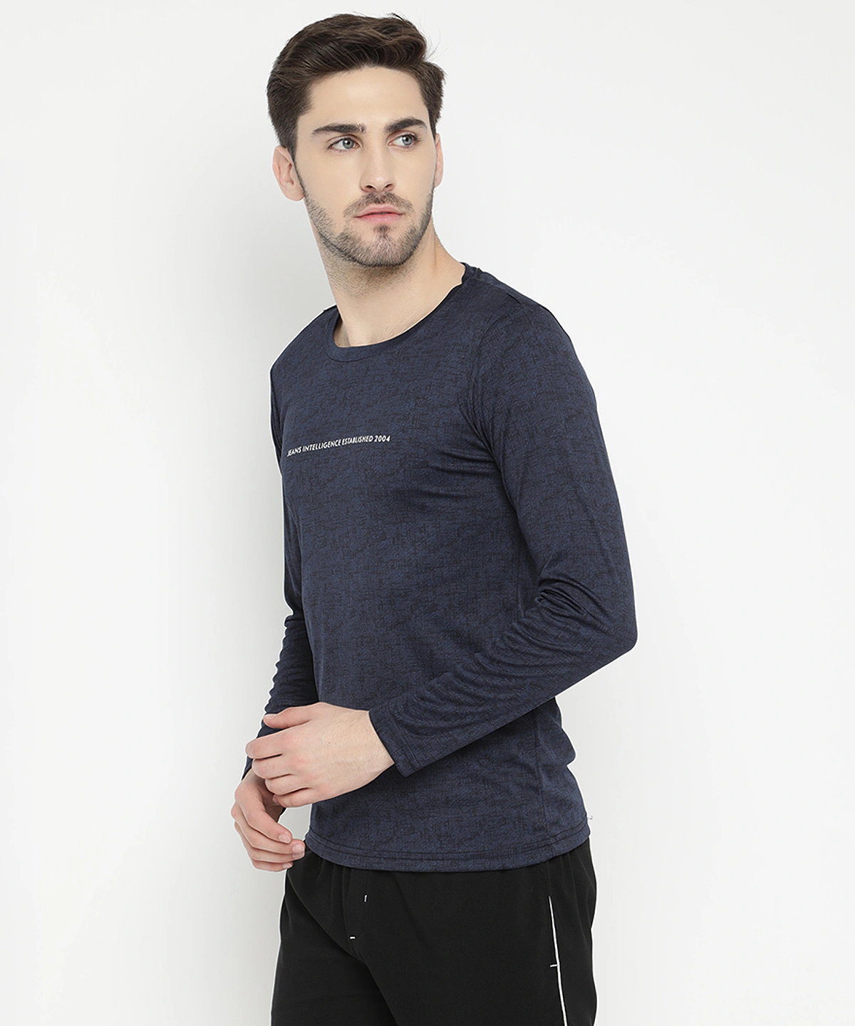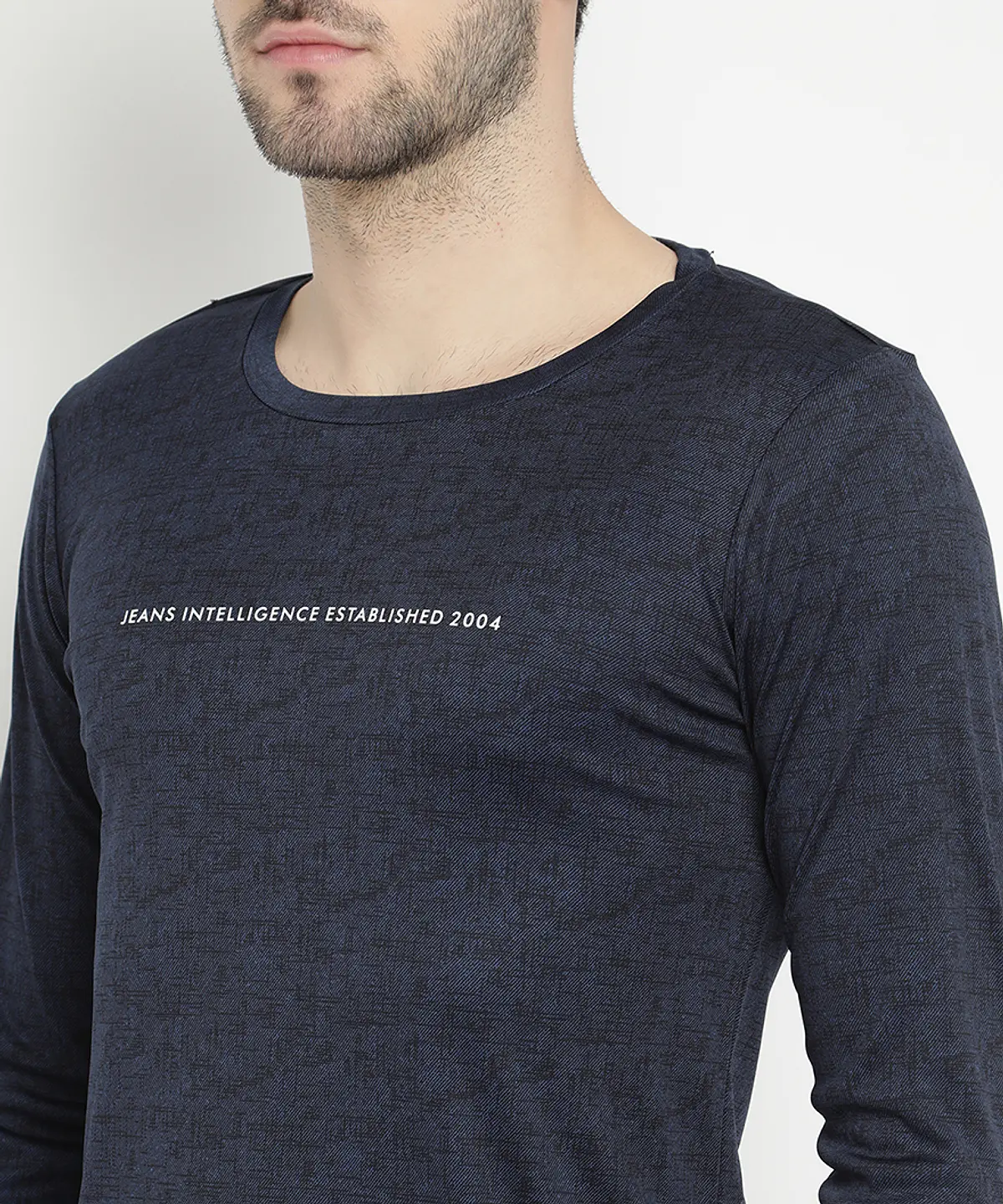 Men Full Sleeve Round Neck Printed T Shirts (D_Grey)