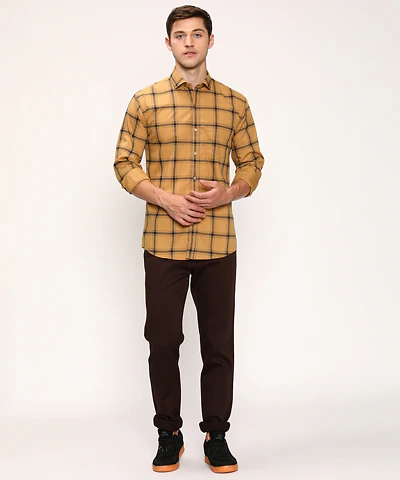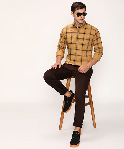 Men Full Sleeves Checked Casual Shirt (Maroon)