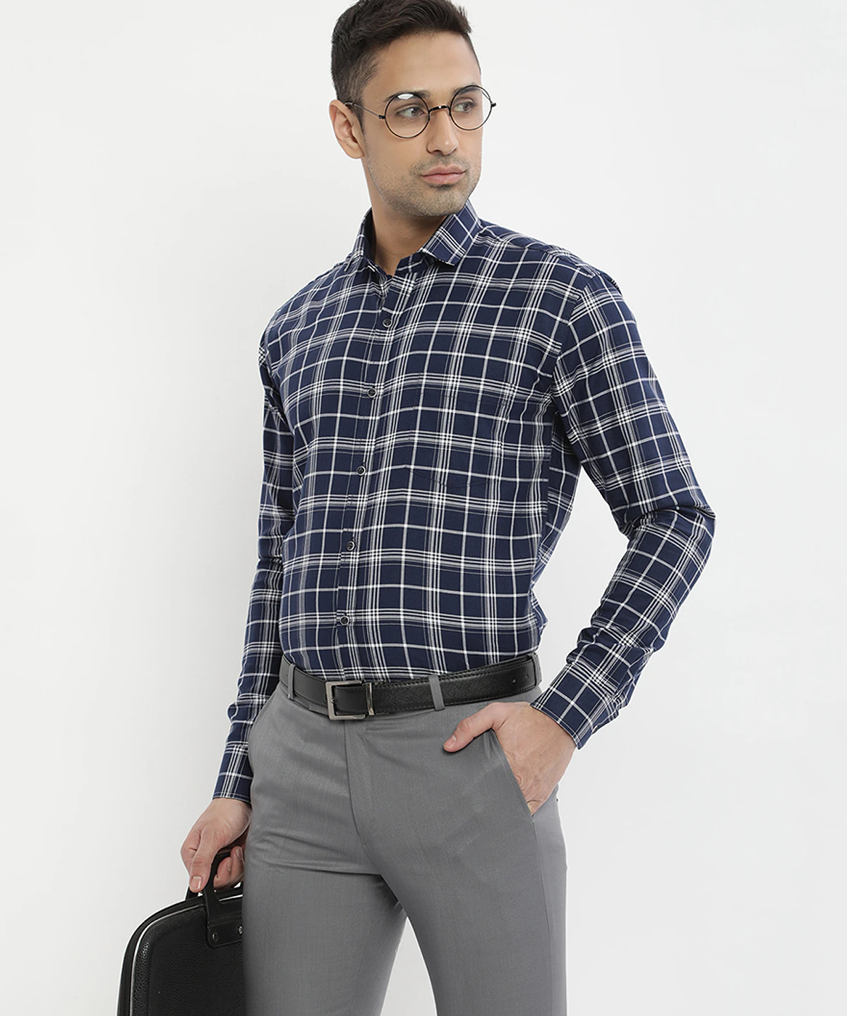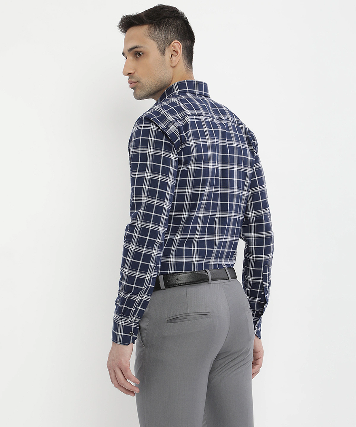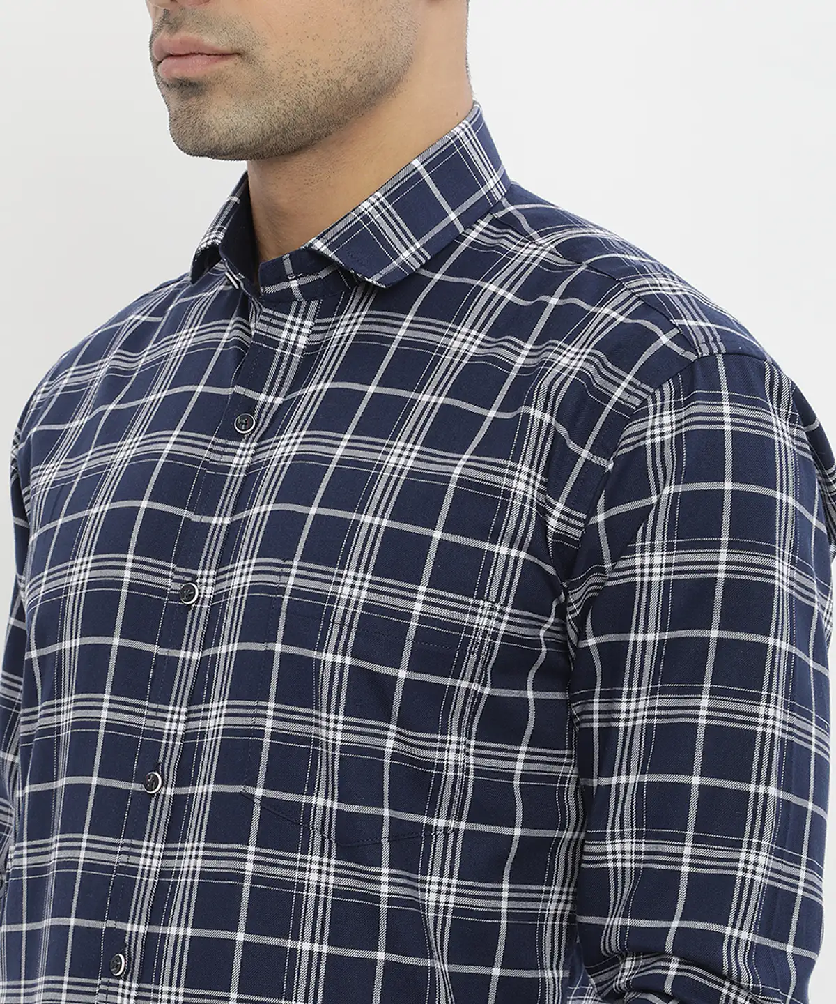 Men Full Sleeves Checked Formal Shirt (White)