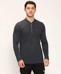 Men Full Sleeves Open Neck T-Shirt (Dark Grey)