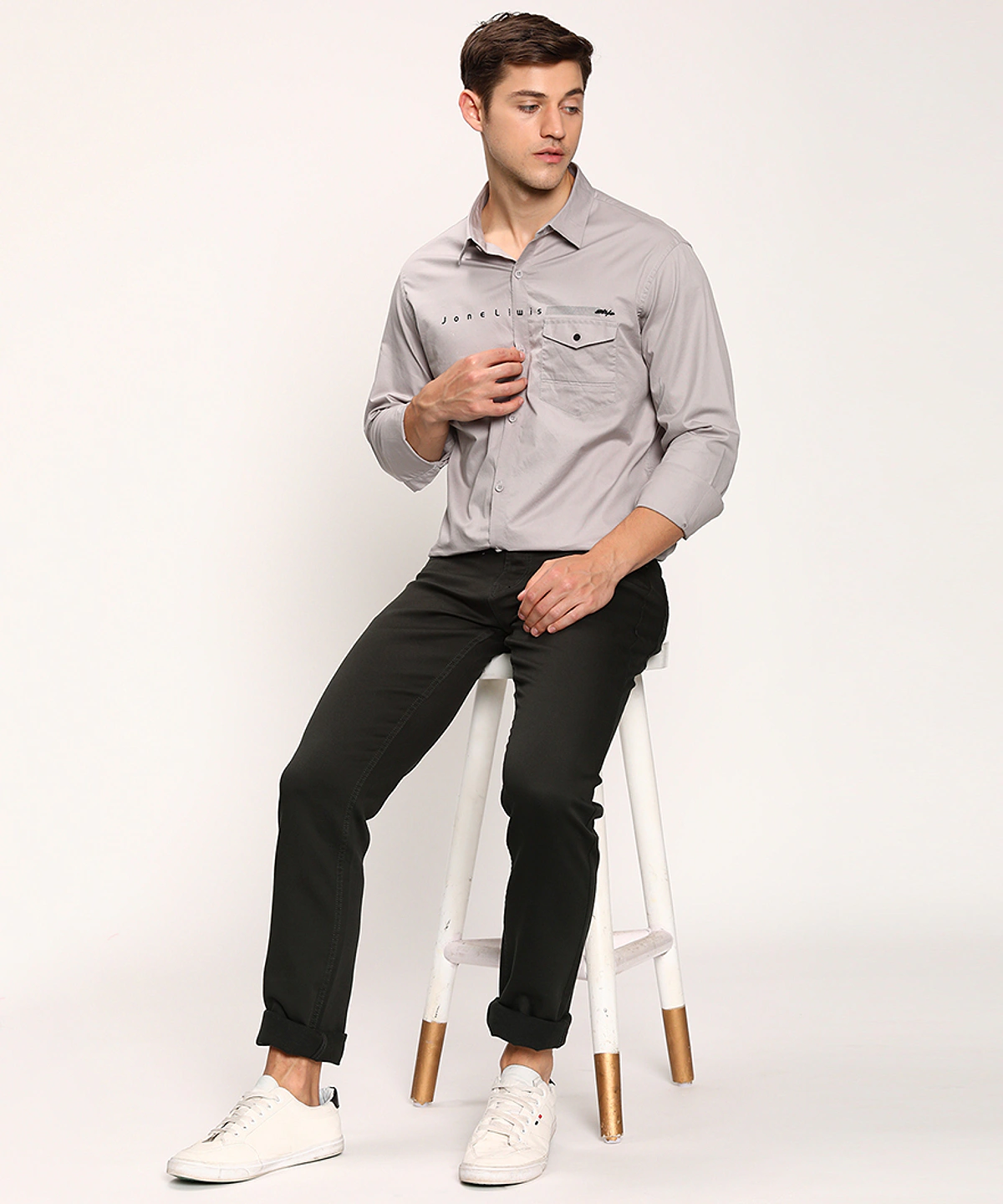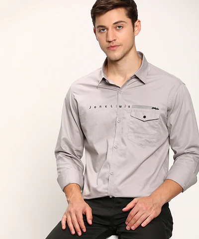 Men Full Sleeves Plain Casual Shirt (Grey)