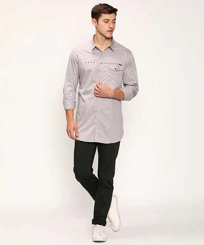 Men Full Sleeves Plain Casual Shirt (Grey)