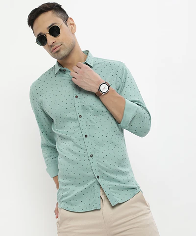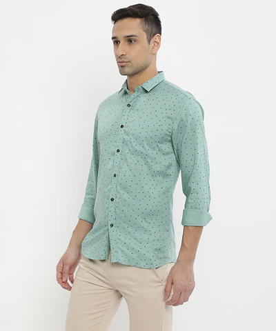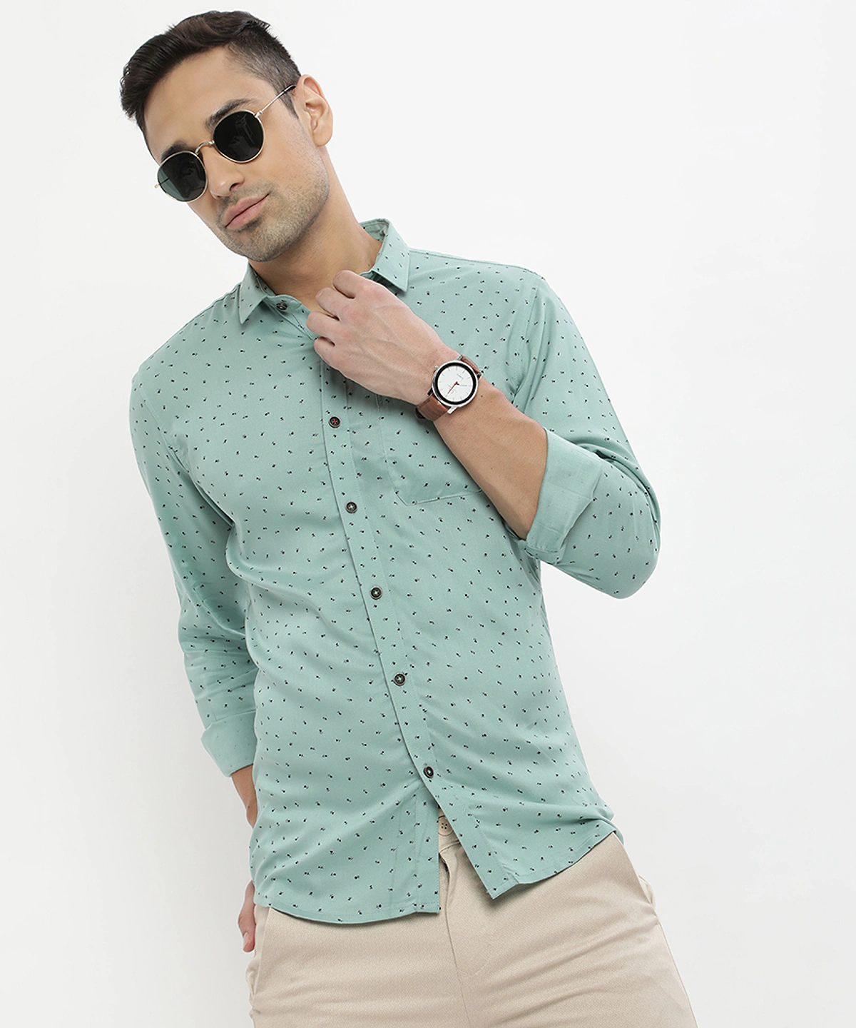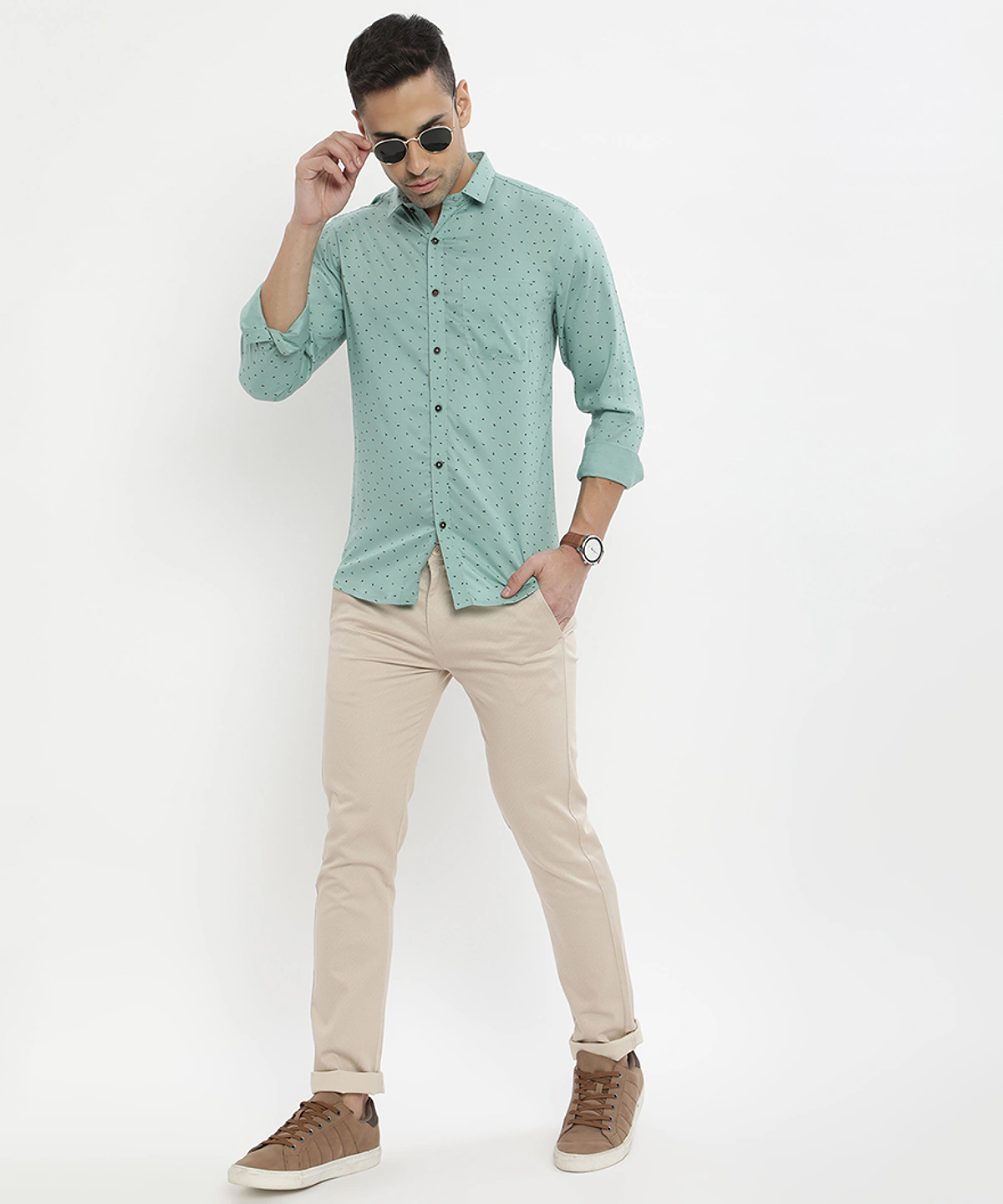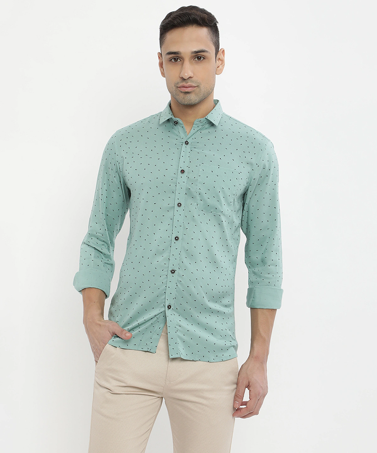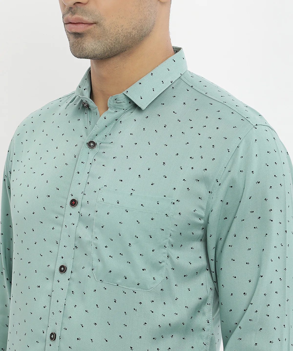 Men Full Sleeves Printed Casual Shirt (Pista)