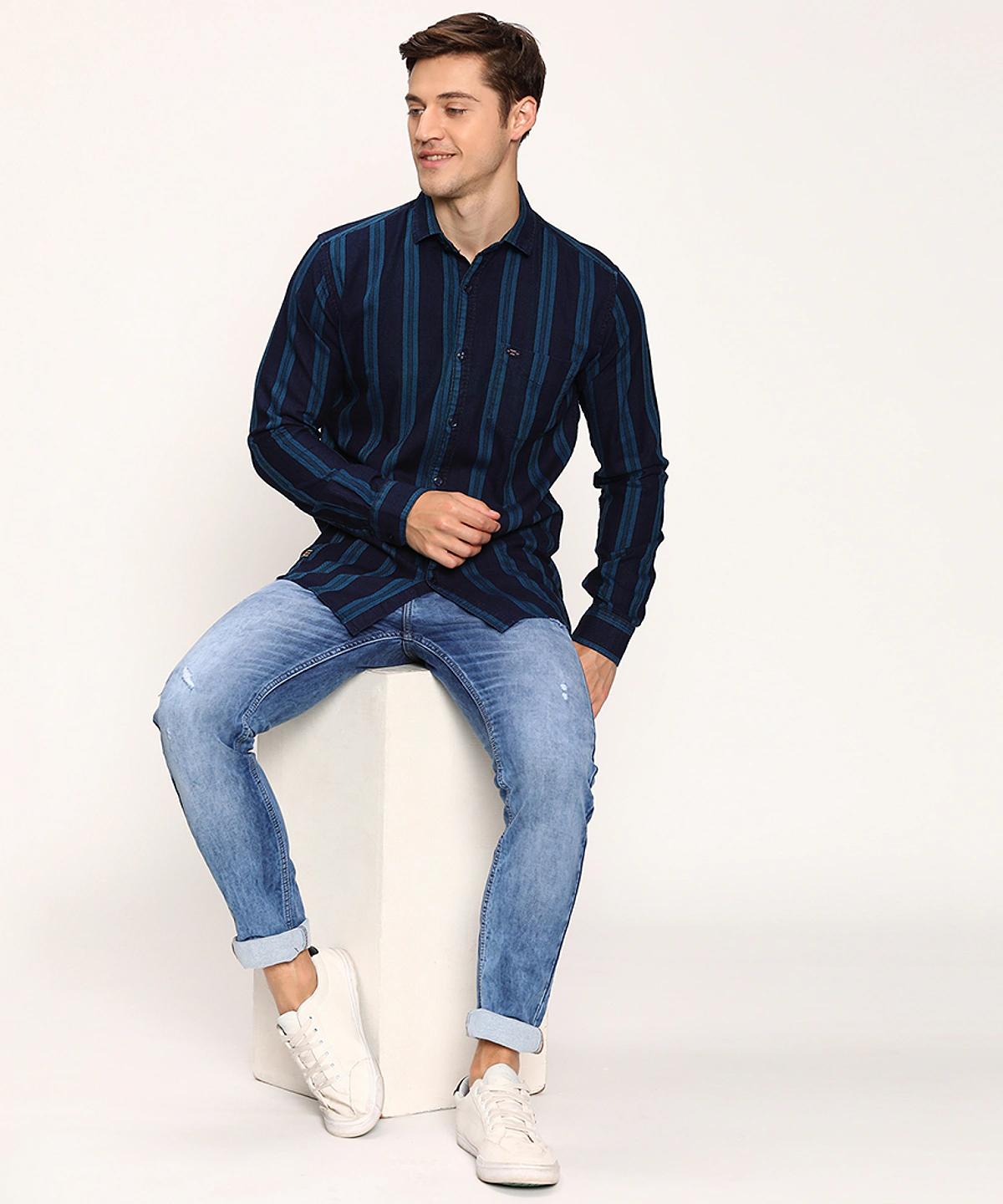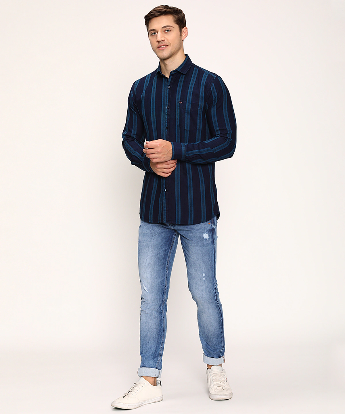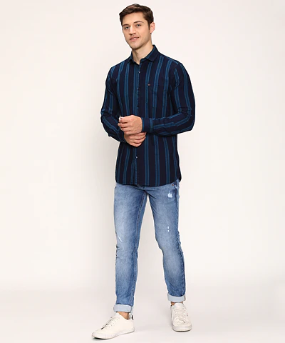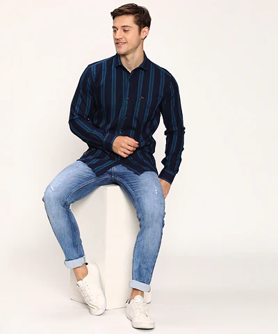 Men Full Sleeves Printed Casual Shirt (White)