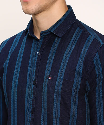 Men Full Sleeves Printed Formal Shirt (Navy Blue)