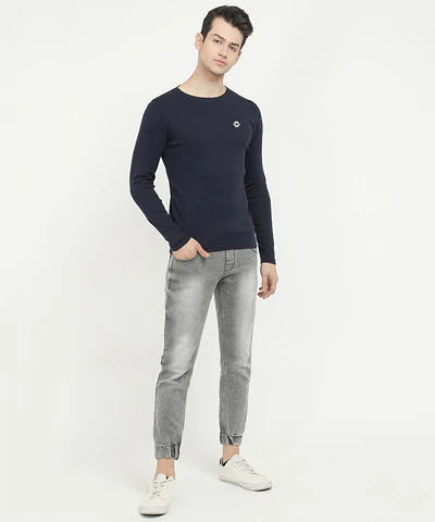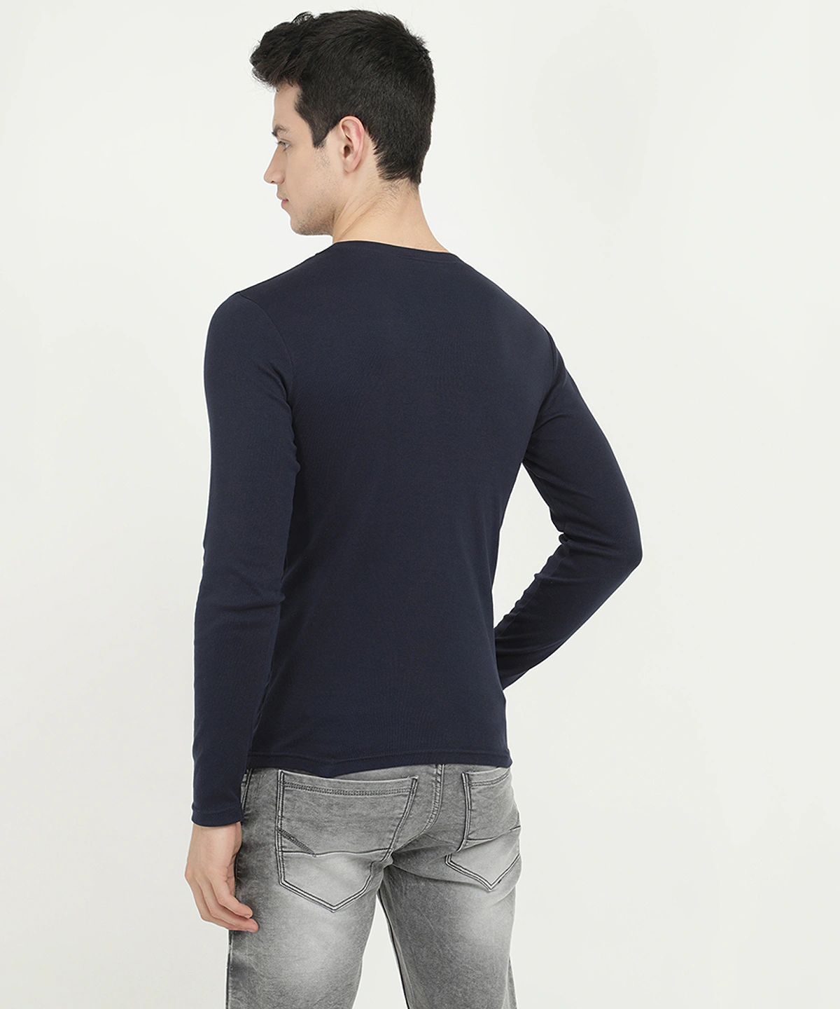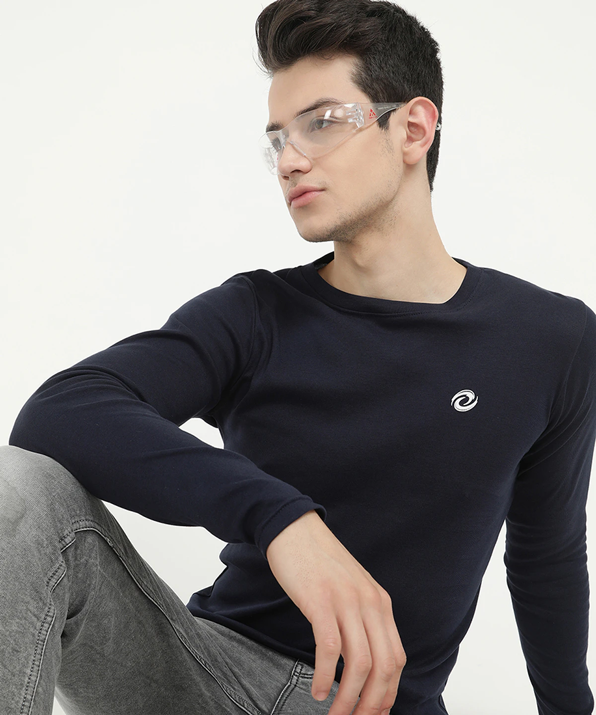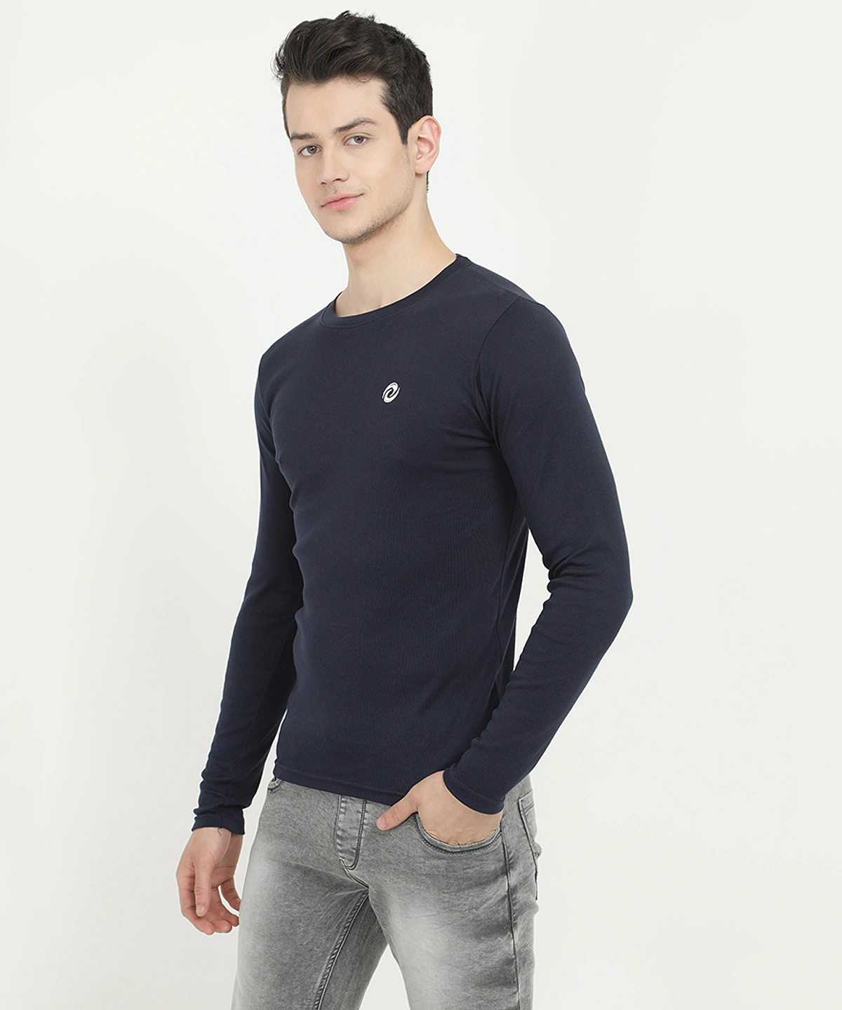 Men Full Sleeves Round Neck T-Shirt (Blue)