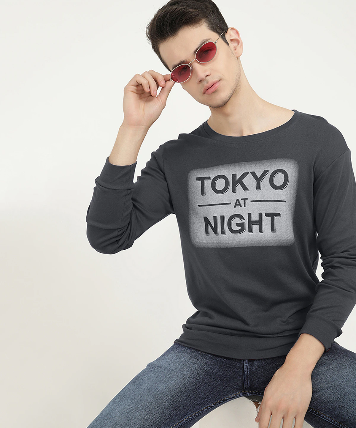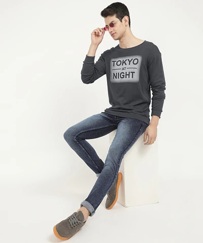 Men Full Sleeves Round Neck T-Shirt (Maroon)