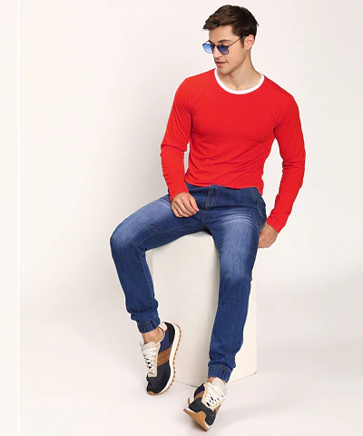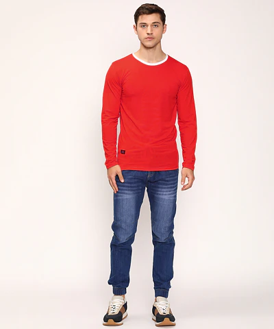 Men Full Sleeves Round Neck T-Shirt (Parrot_Green)