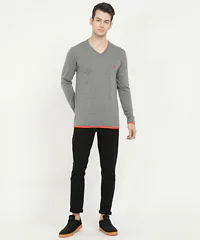 MEN FULL SLEEVES V NECK T-SHIRT (DARK GREY)