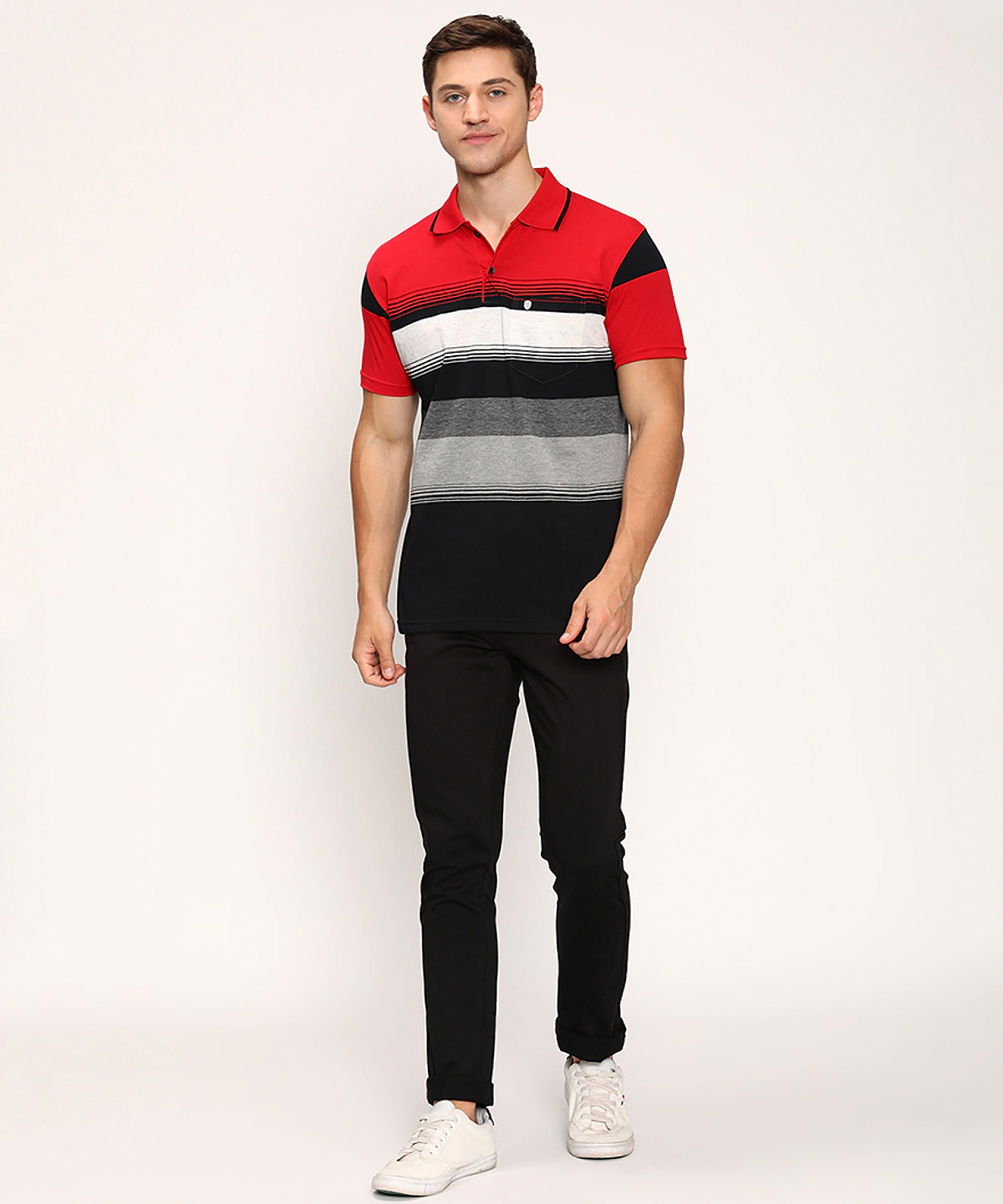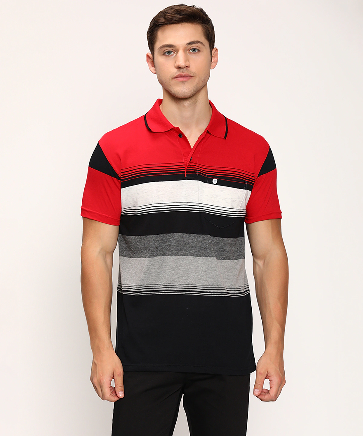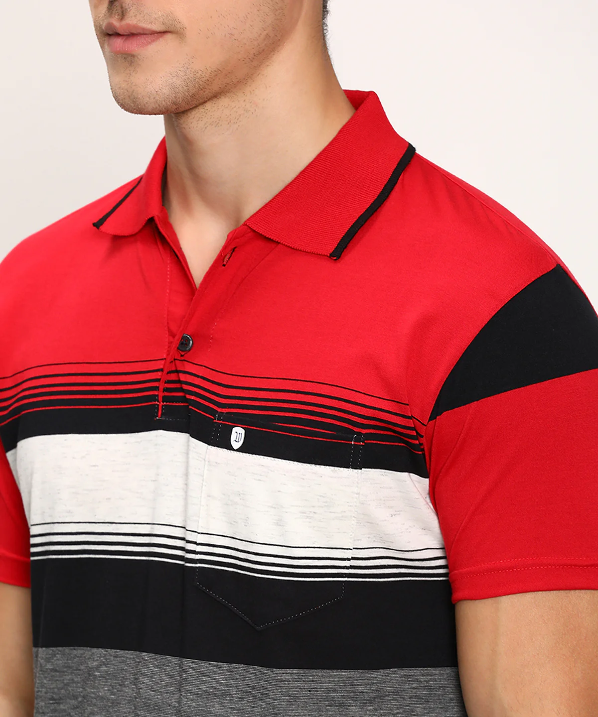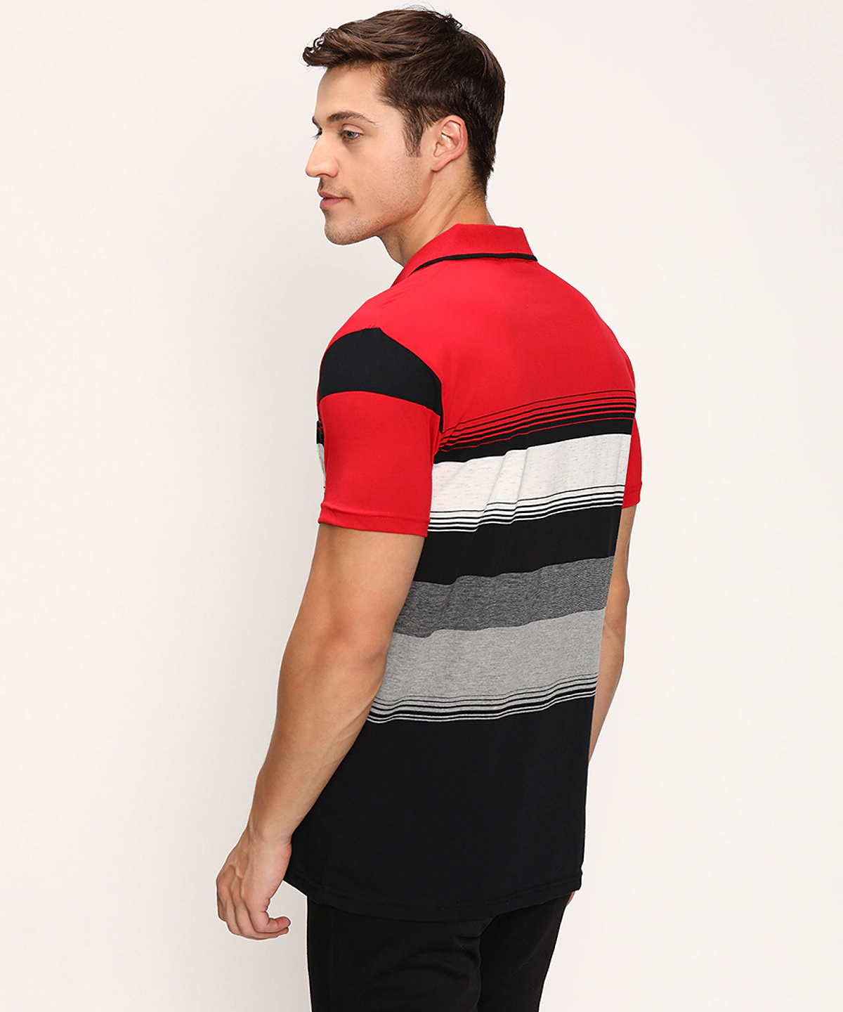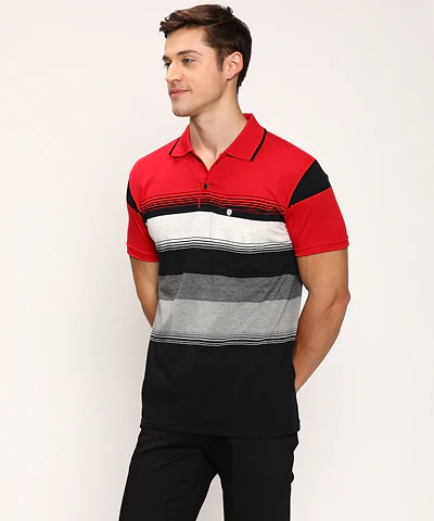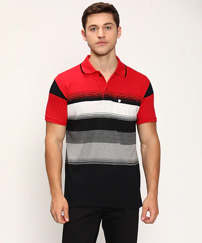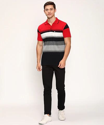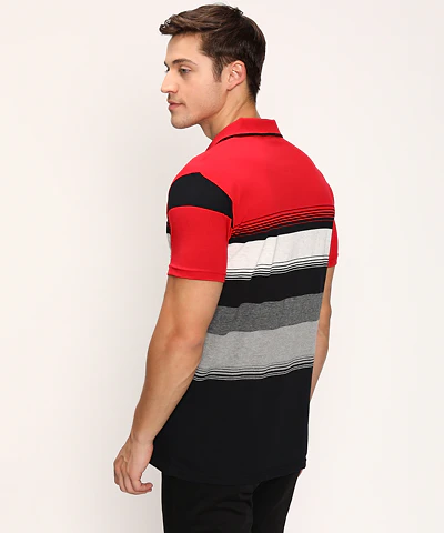 Men Half Sleeves Color Blocked Striped Polo Neck T-Shirt (Grey Melange)