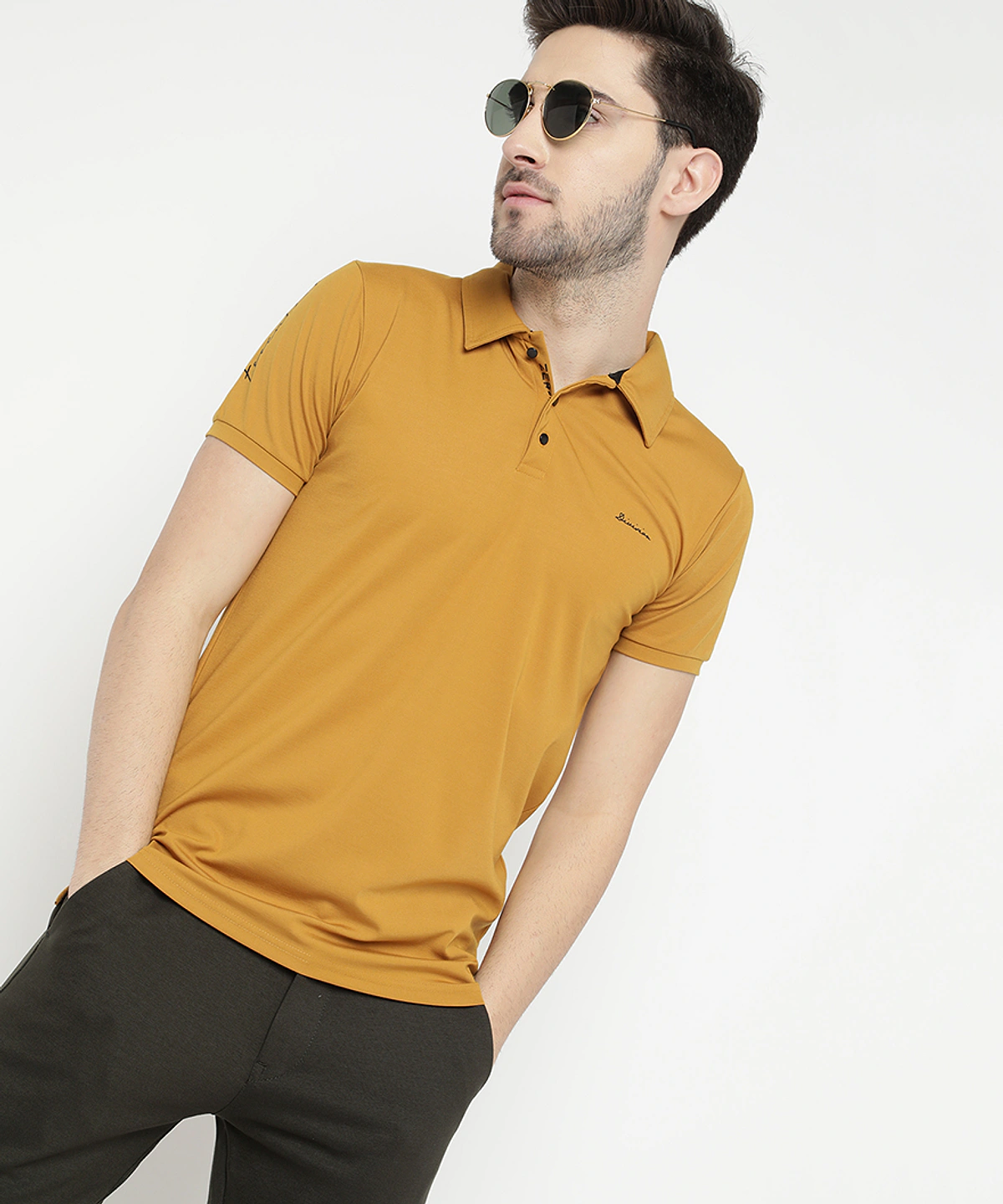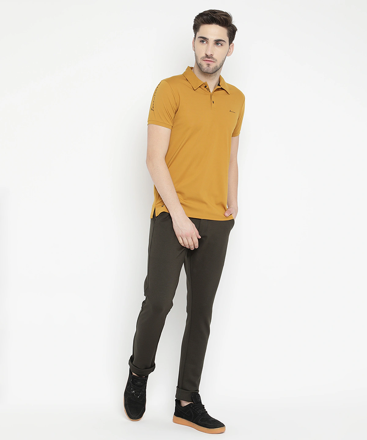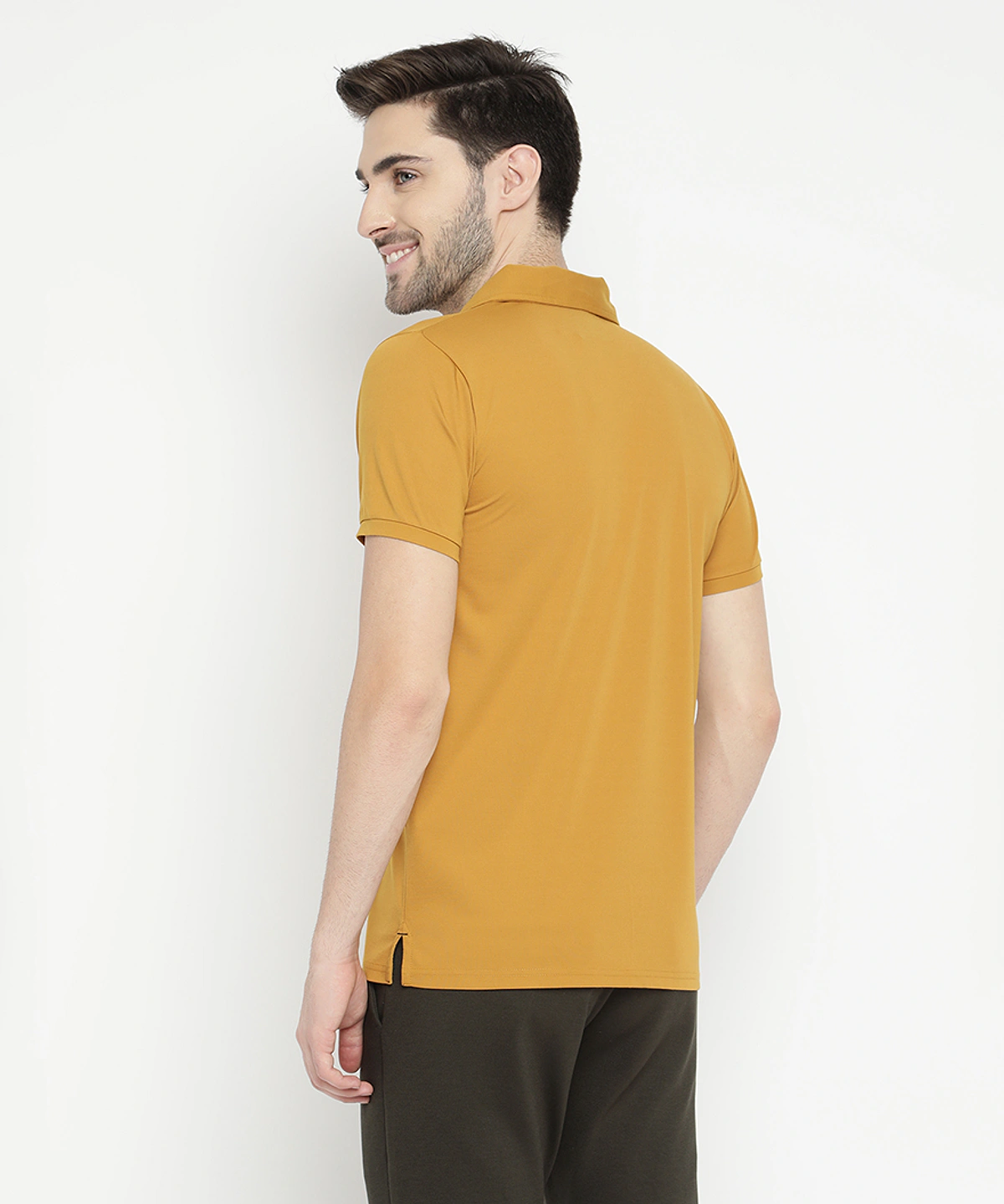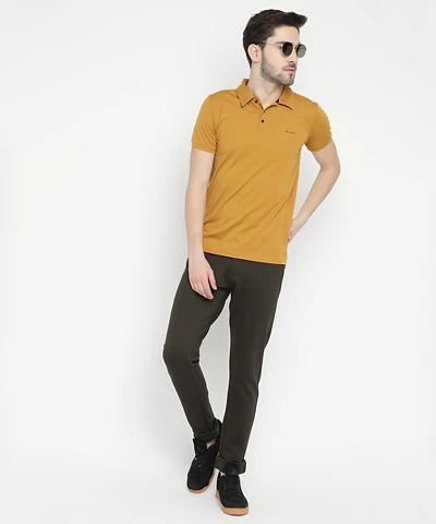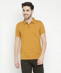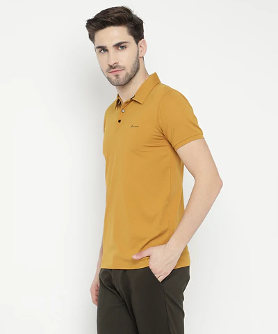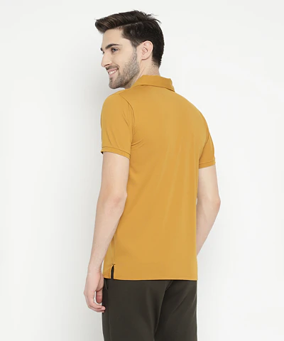 Men Half Sleeves Plain Polo Neck T-Shirt (Mustard)