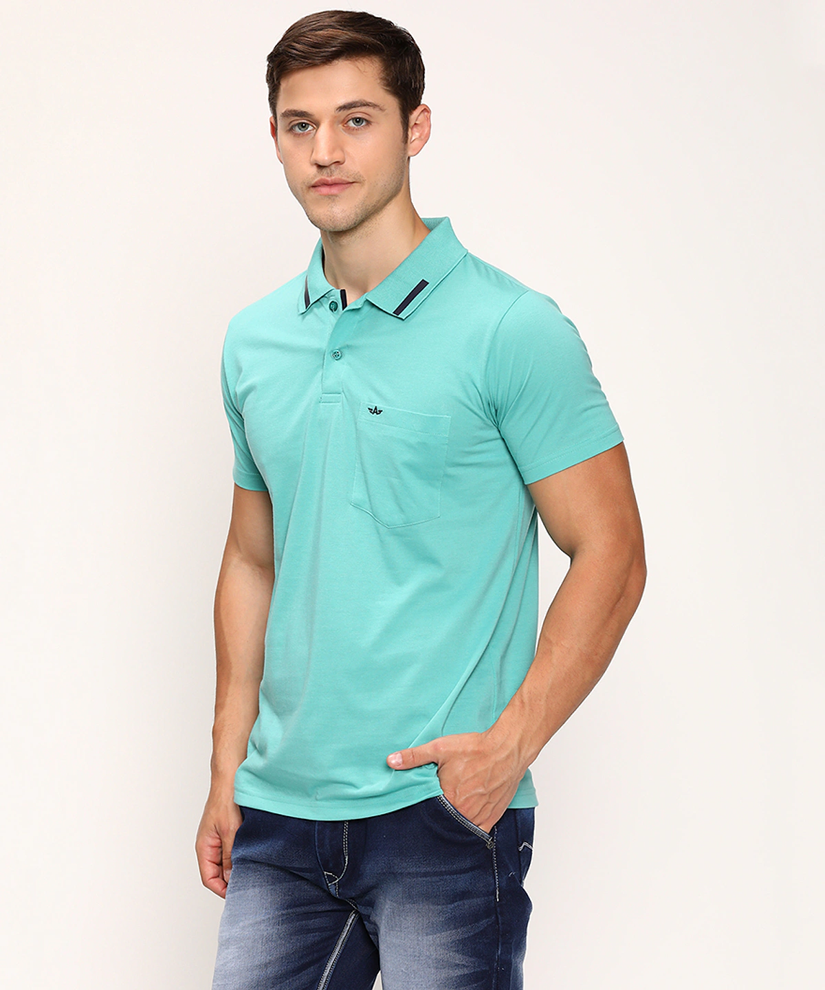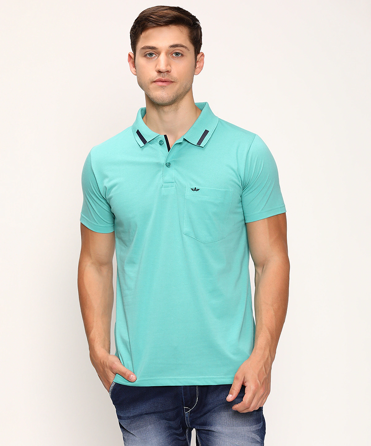Men Half Sleeves Plain Polo Neck T-Shirt (Navy Blue)