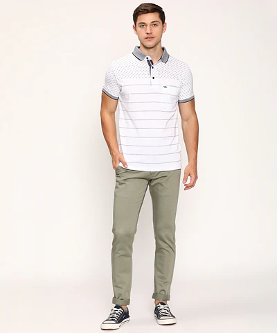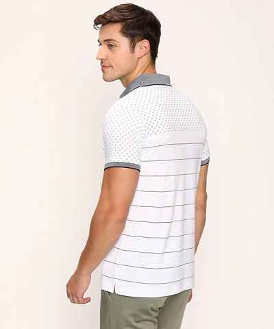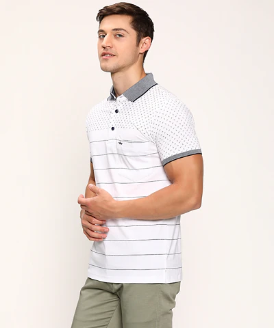 Men Half Sleeves Printed Polo Neck T-Shirt (White)