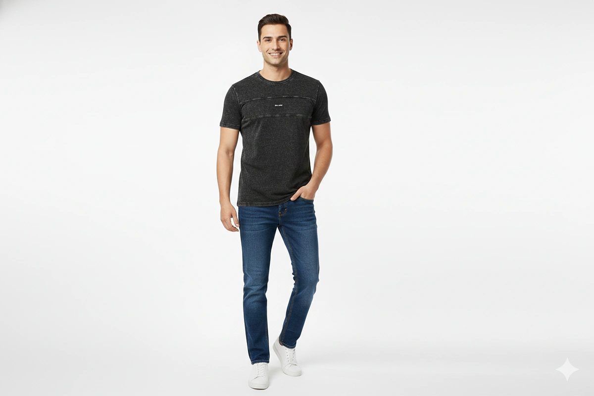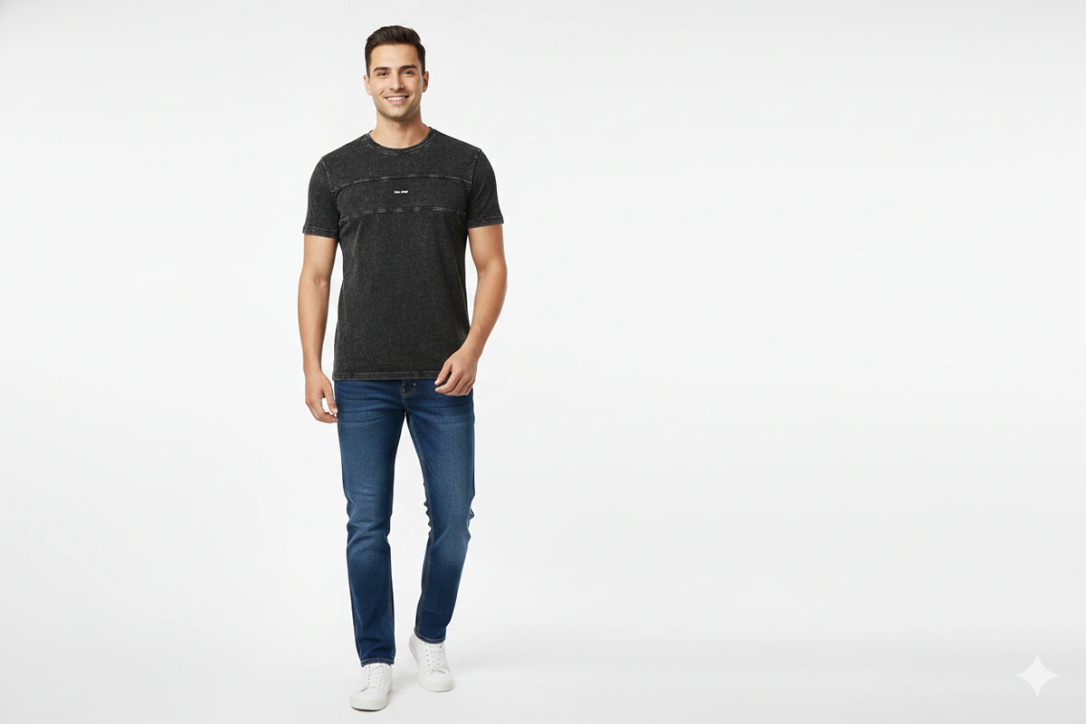 MEN POLYCOTTON DTM RIB NECK 2_V_C&S REGULAR LENGTH REGULAR SLEEVE T SHIRTS