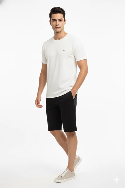 MEN POLYSTER DTM RIB NECK SOLID REGULAR LENGTH REGULAR SLEEVE T SHIRTS