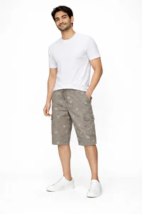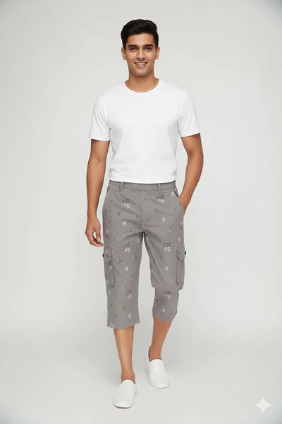 MENS HOSIERY PRINTED BERMUDA (GREY MELANGE)