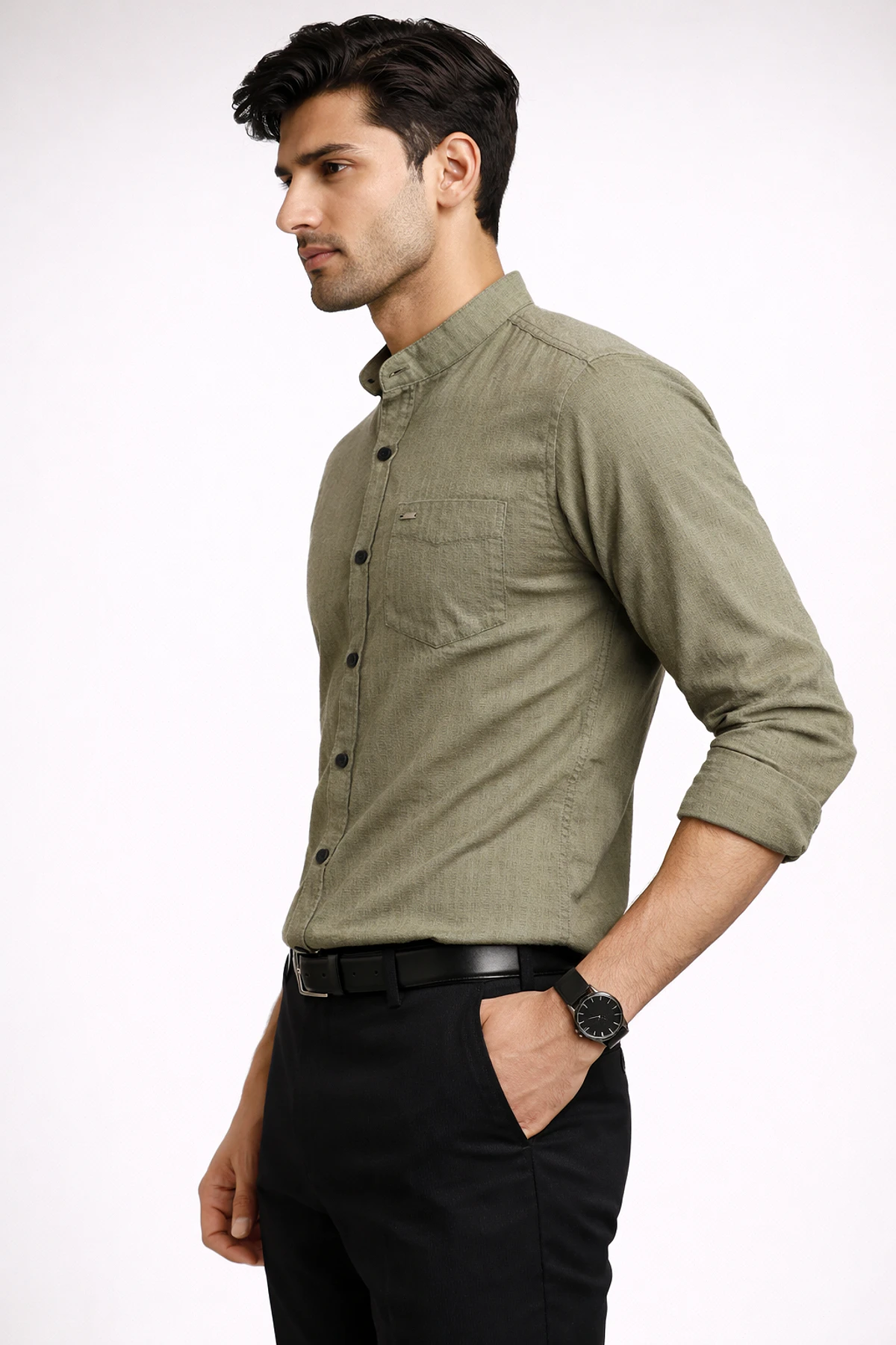 MEN FULL SLEEVES PLAIN CASUAL SHIRT (GREY)