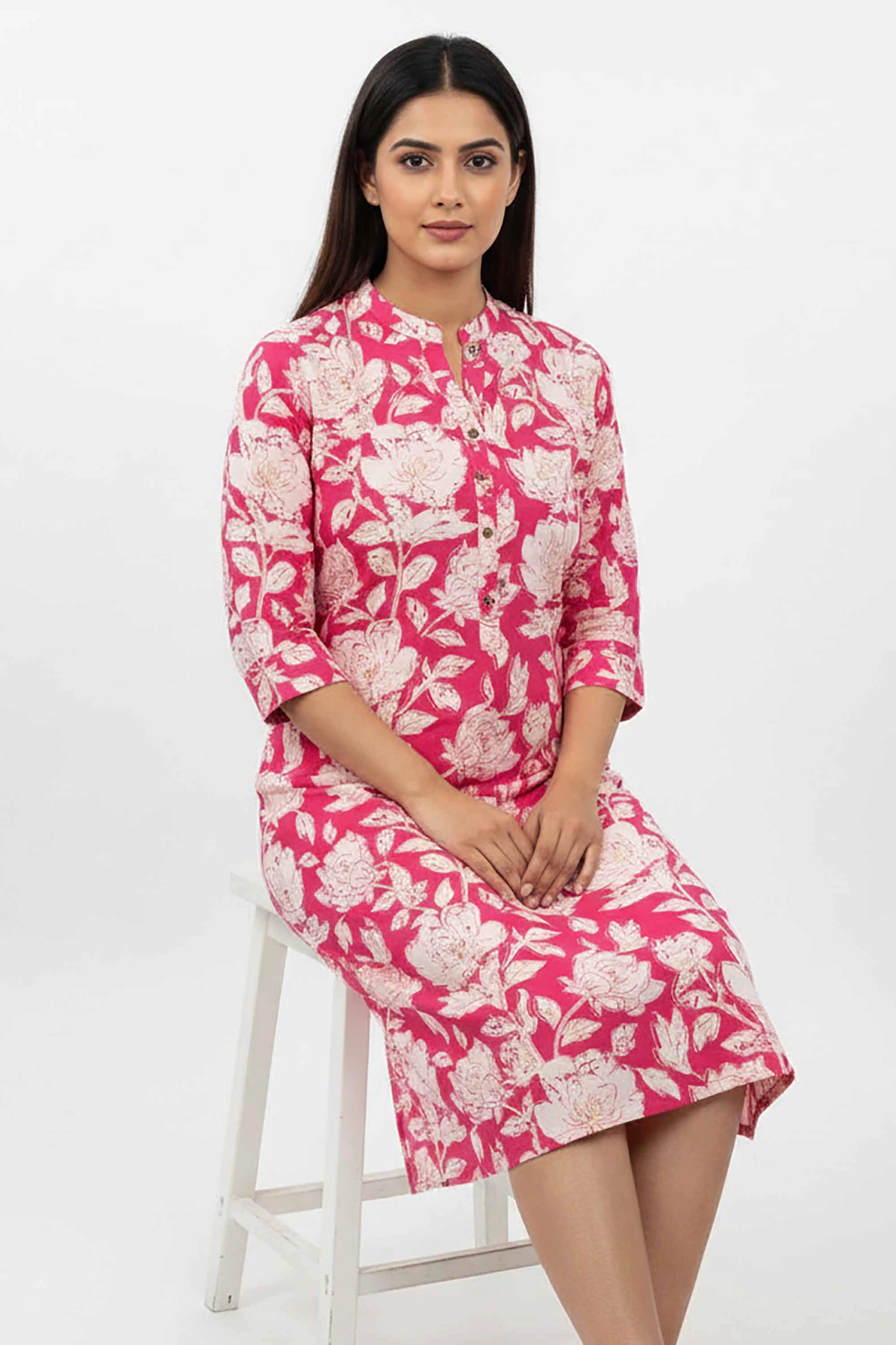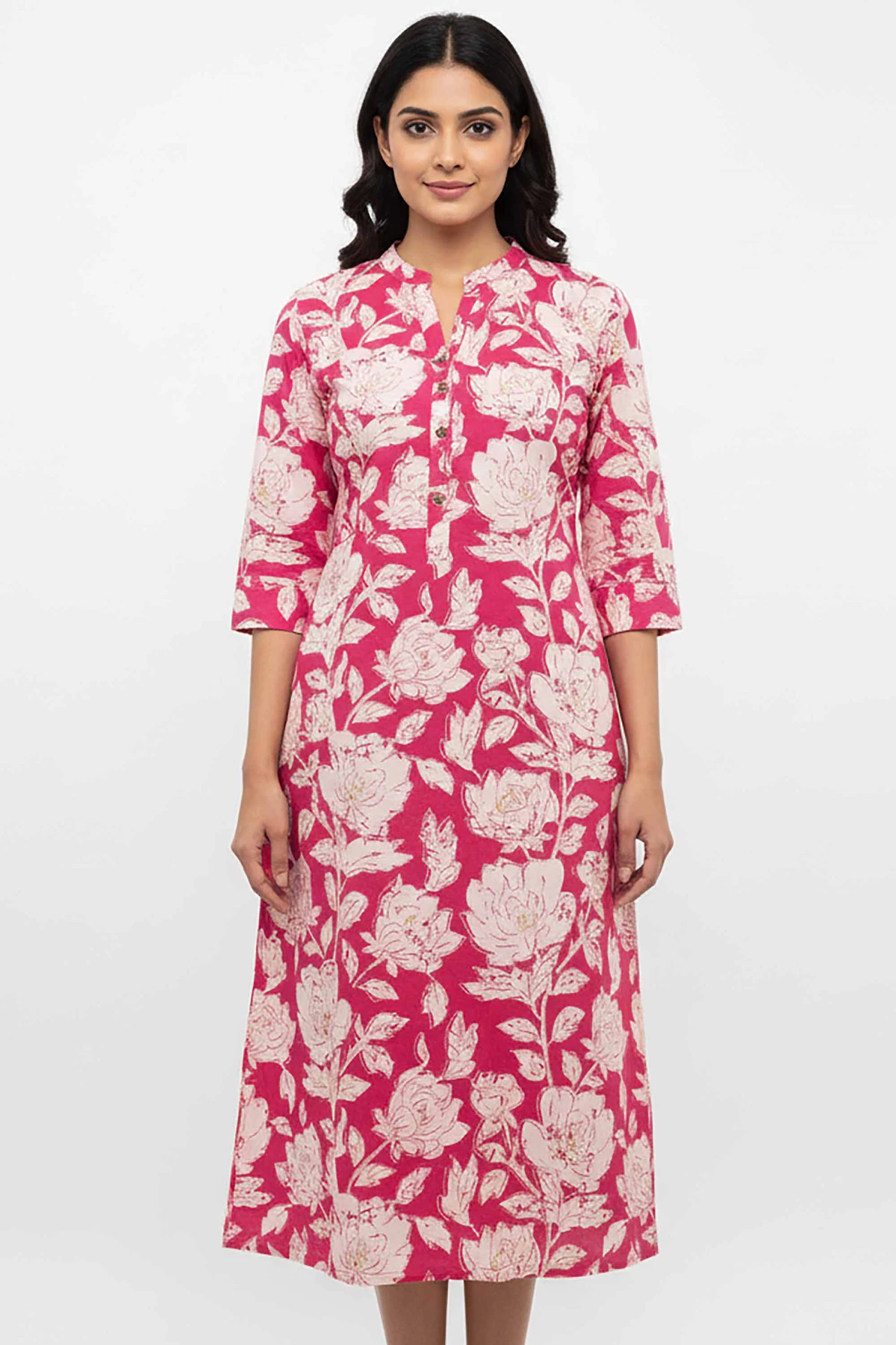 WOMEN CAM SOLID QUARTER SLEEVE KNEE LENGTH KURTIS