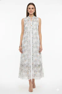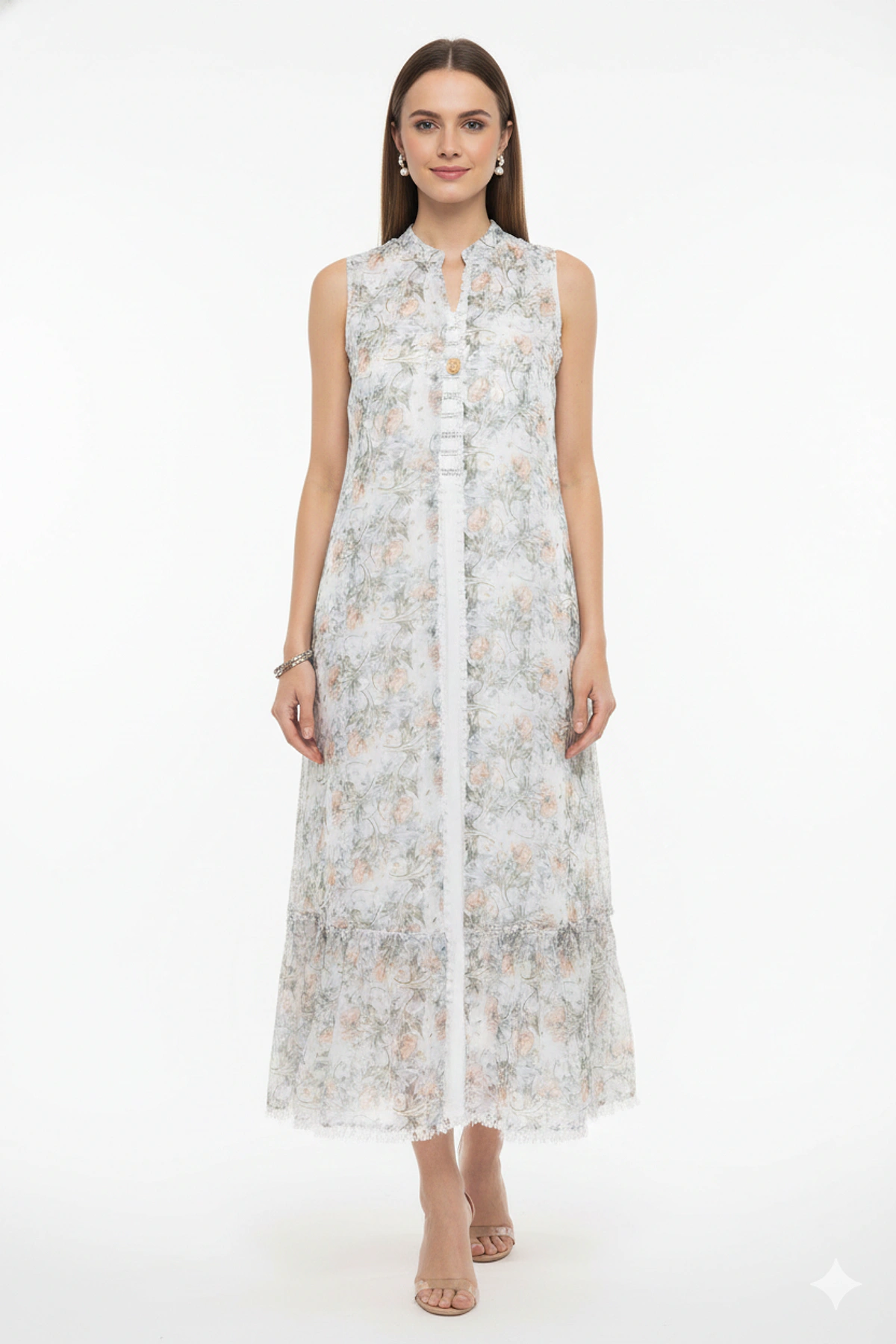 WOMEN COTTON FRONT OPEN CALF LENGTH SLEEVELESS KURTIS