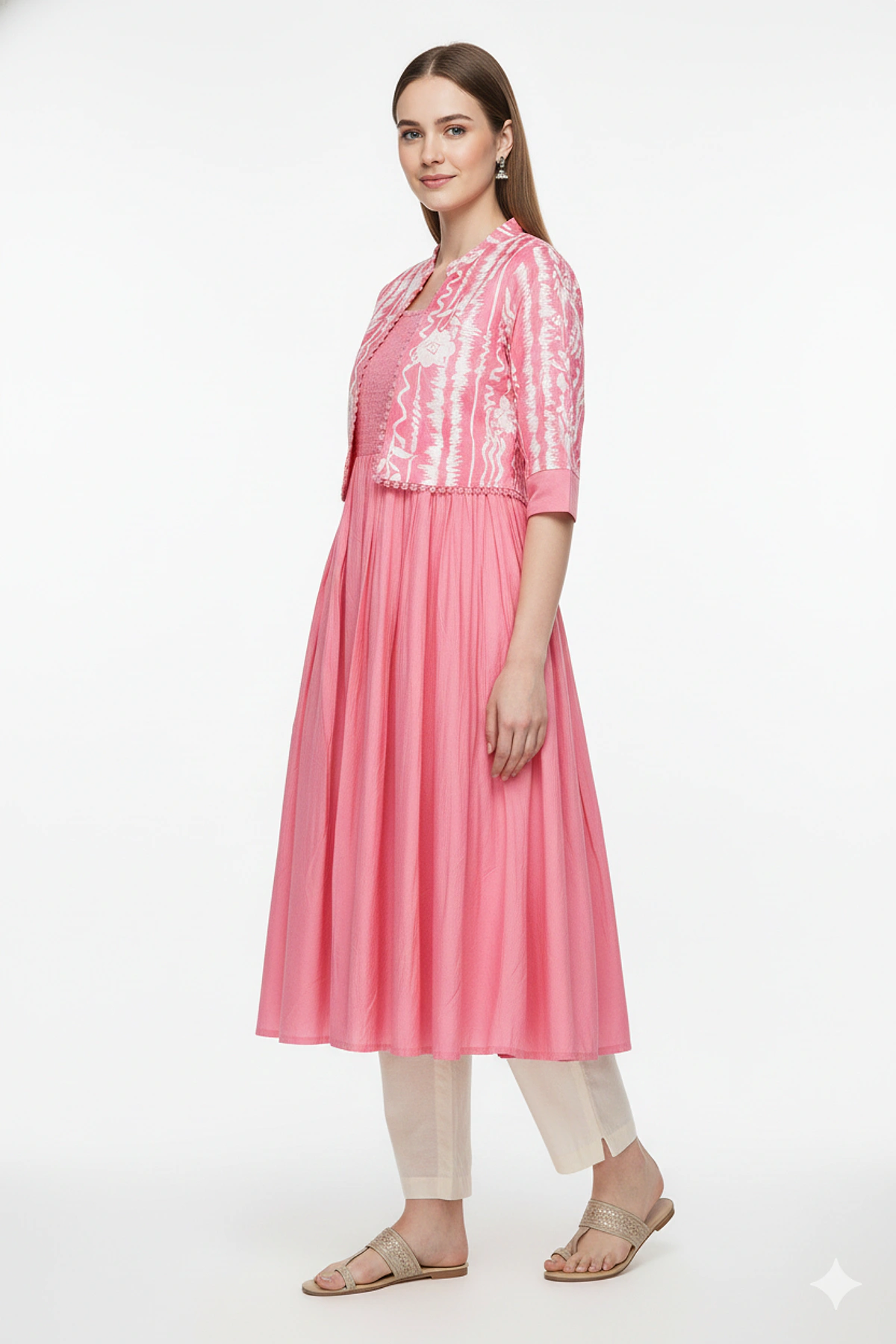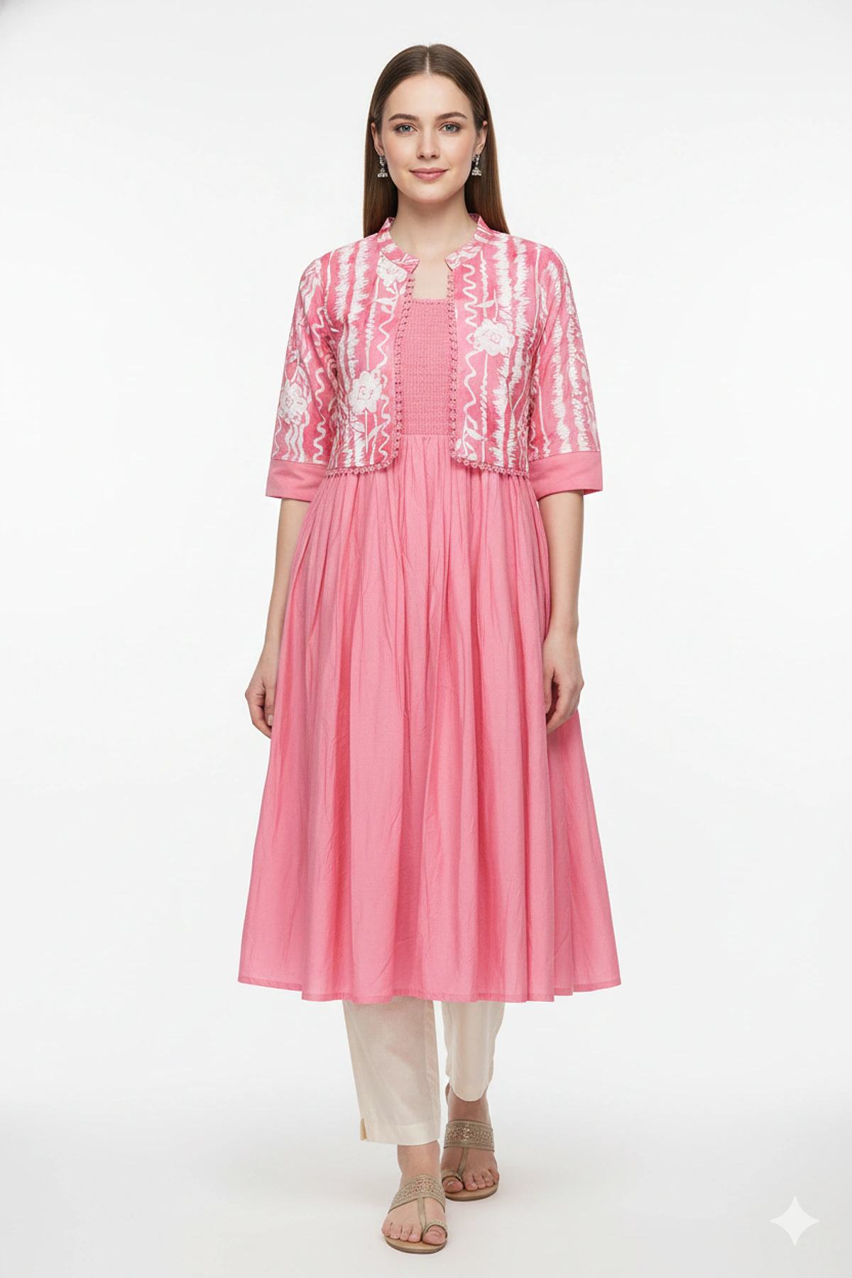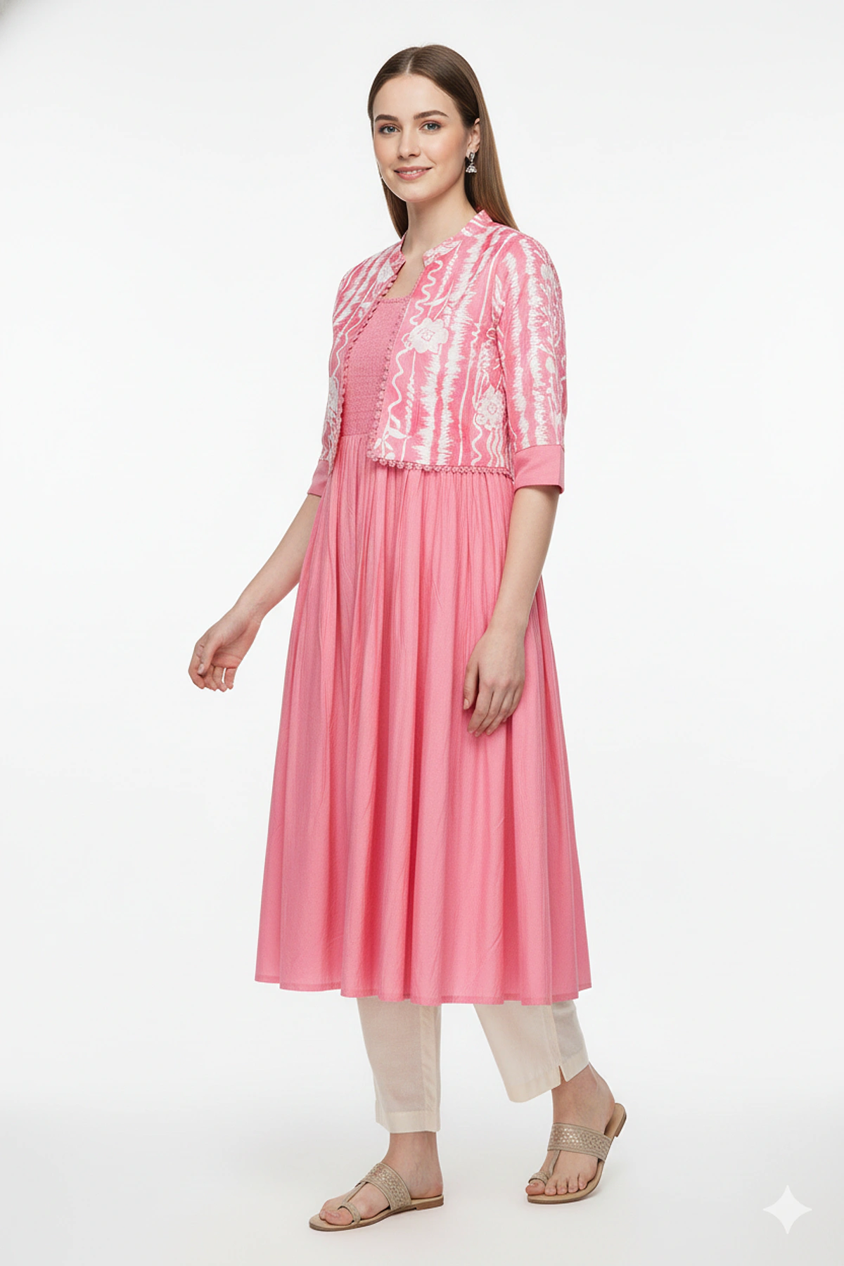 WOMEN COTTON JKT CALF LENGTH QUARTER SLEEVE KURTIS