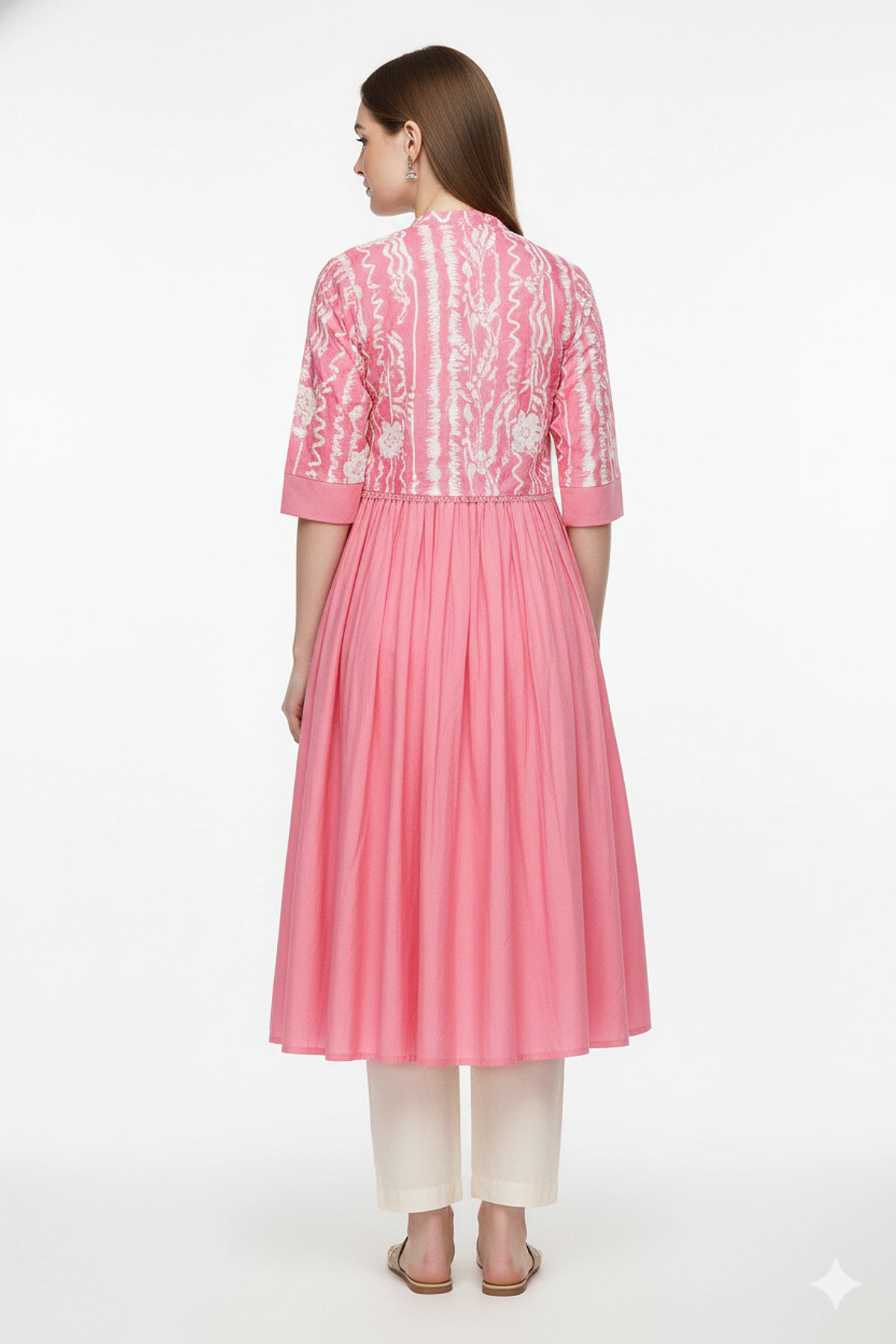 WOMEN SILK FLAREDÂ QUARTER SLEEVE KNEE LENGTH KURTIS