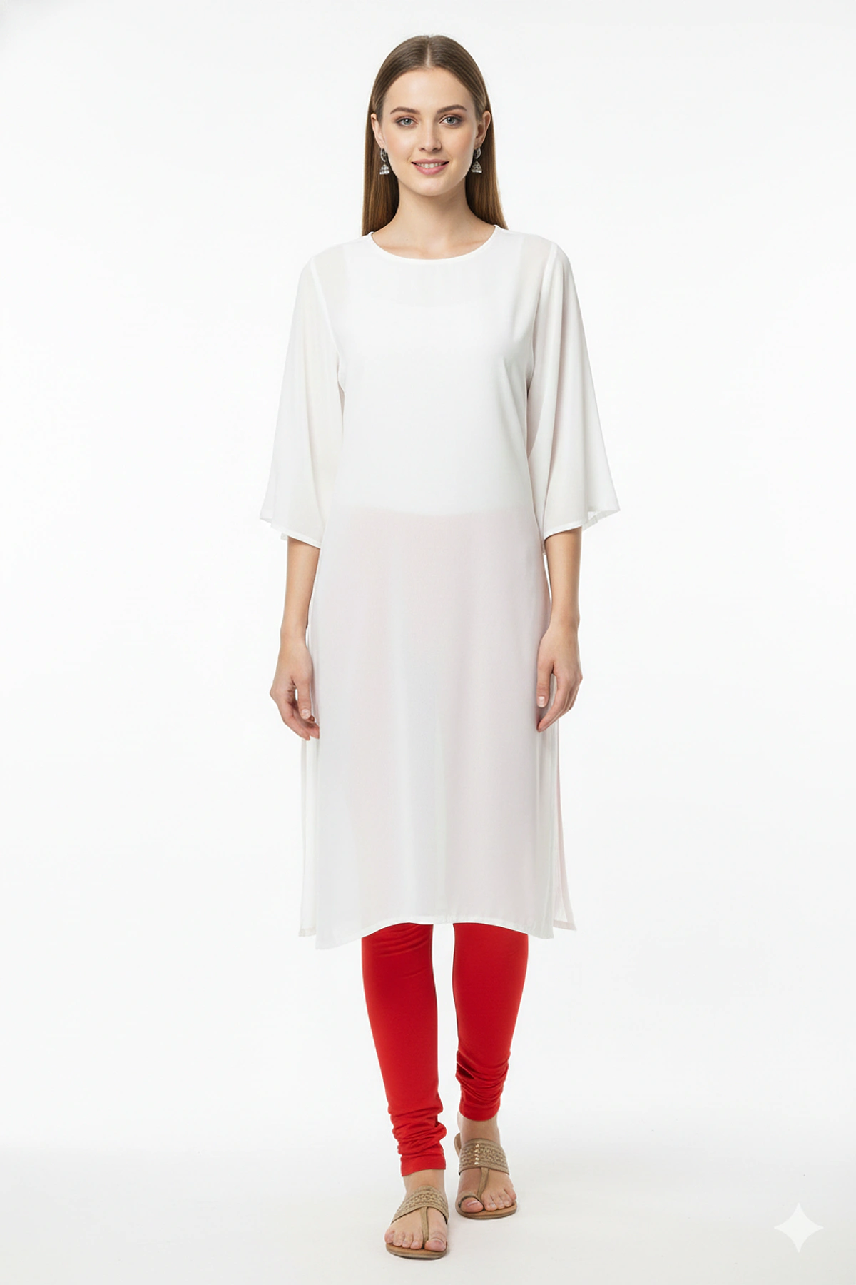 WOMEN CAM SOLID QUARTER SLEEVE KURTIS