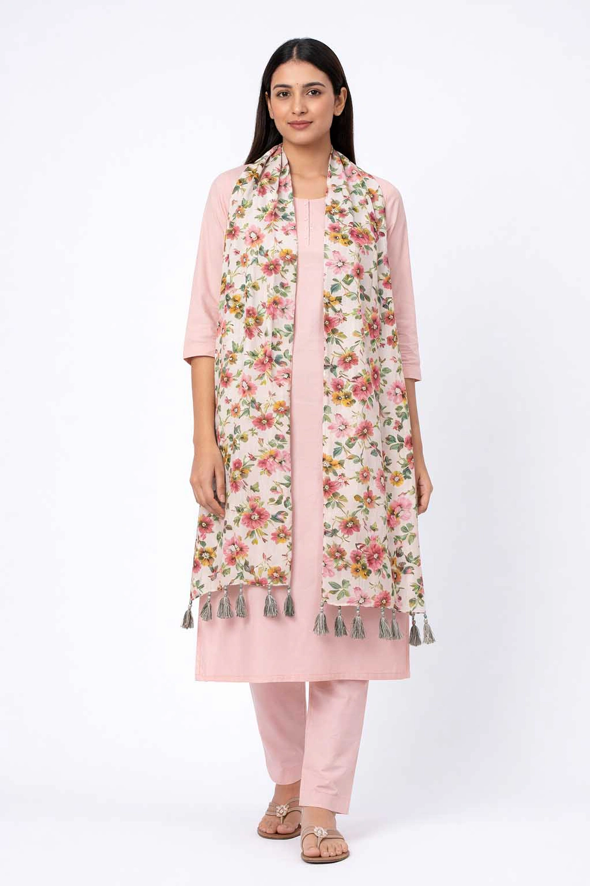WOMEN CAM SOLID QUARTER SLEEVE KURTIS