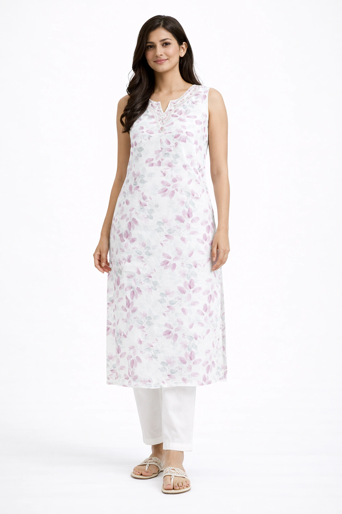 WOMEN RAYON SOLID SLEEVELESS KNEE LENGTH KURTIS