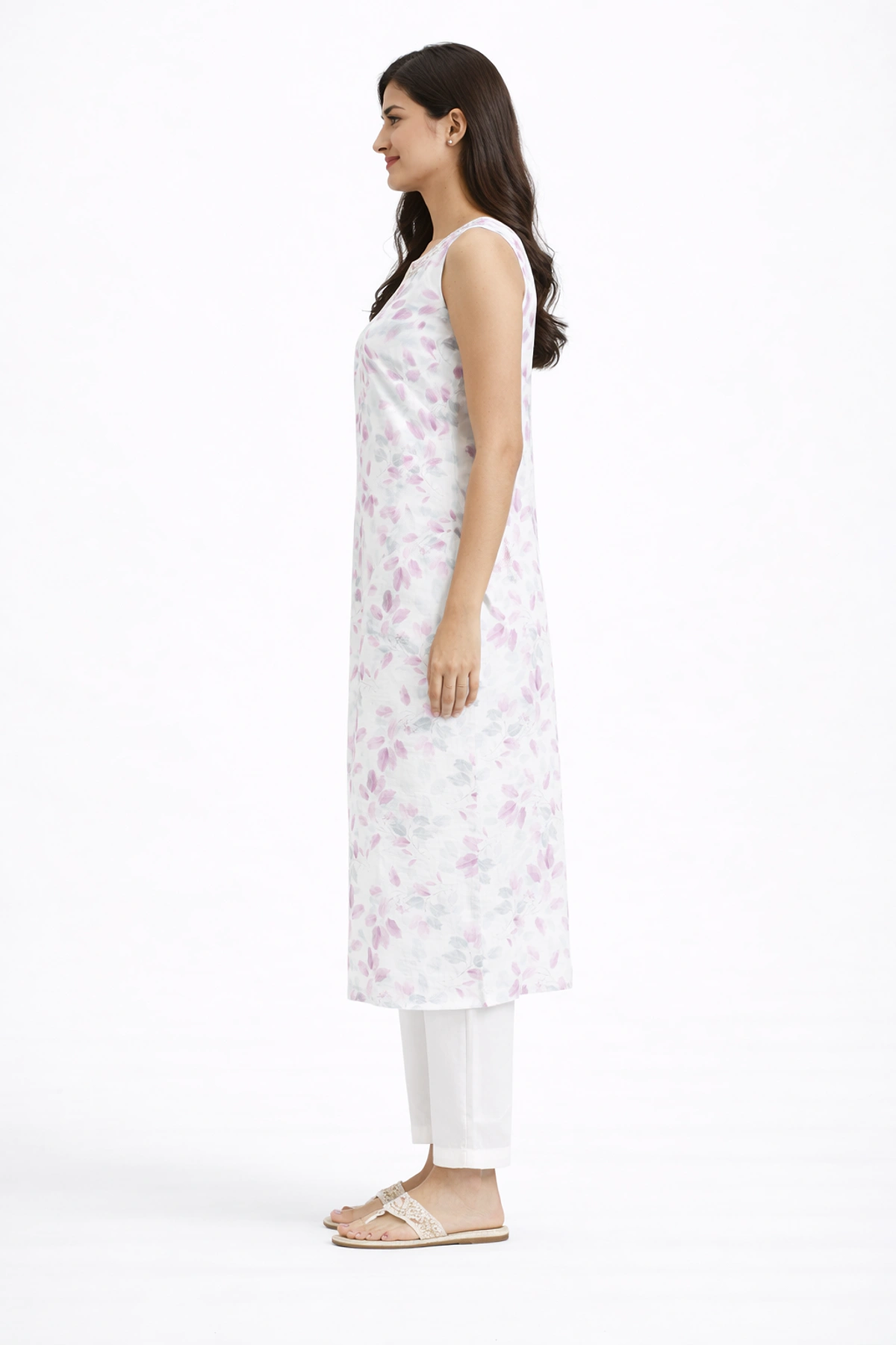 WOMEN SILK SOLID SLEEVELESS CALF LENTH KURTIS