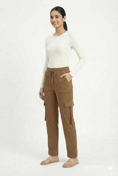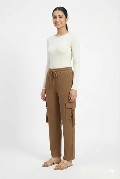 WOMEN POLYCOTTON CARGO REGULAR LENGTH TRACK PANTS & PYJAMAS