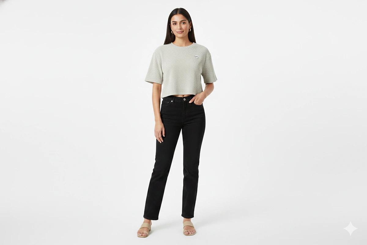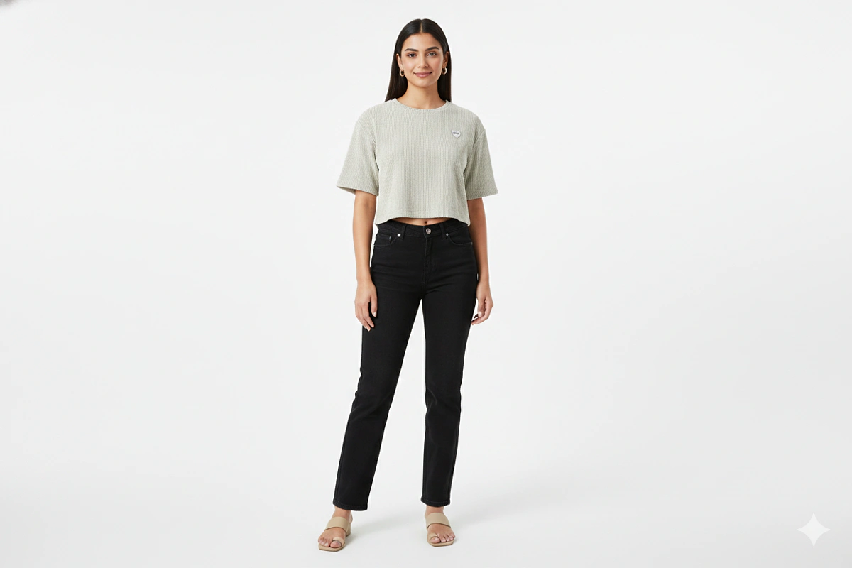 WOMEN POLYSTER CROP LENGTH REGULAR SLEEVE TSHIRTS & TOPS