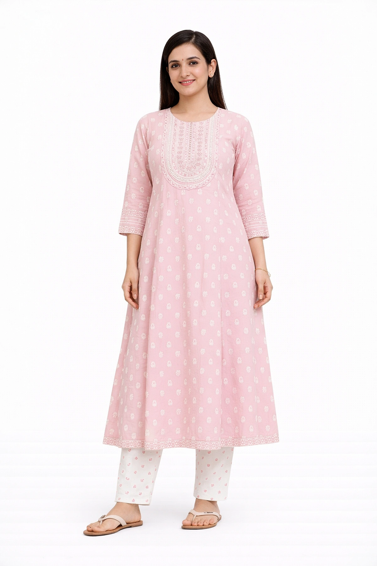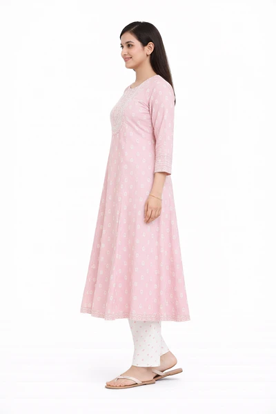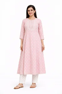 WOMEN POLYSTER FLAIR CALF LENGTH QUARTER SLEEVE KURTAS & SUITS
