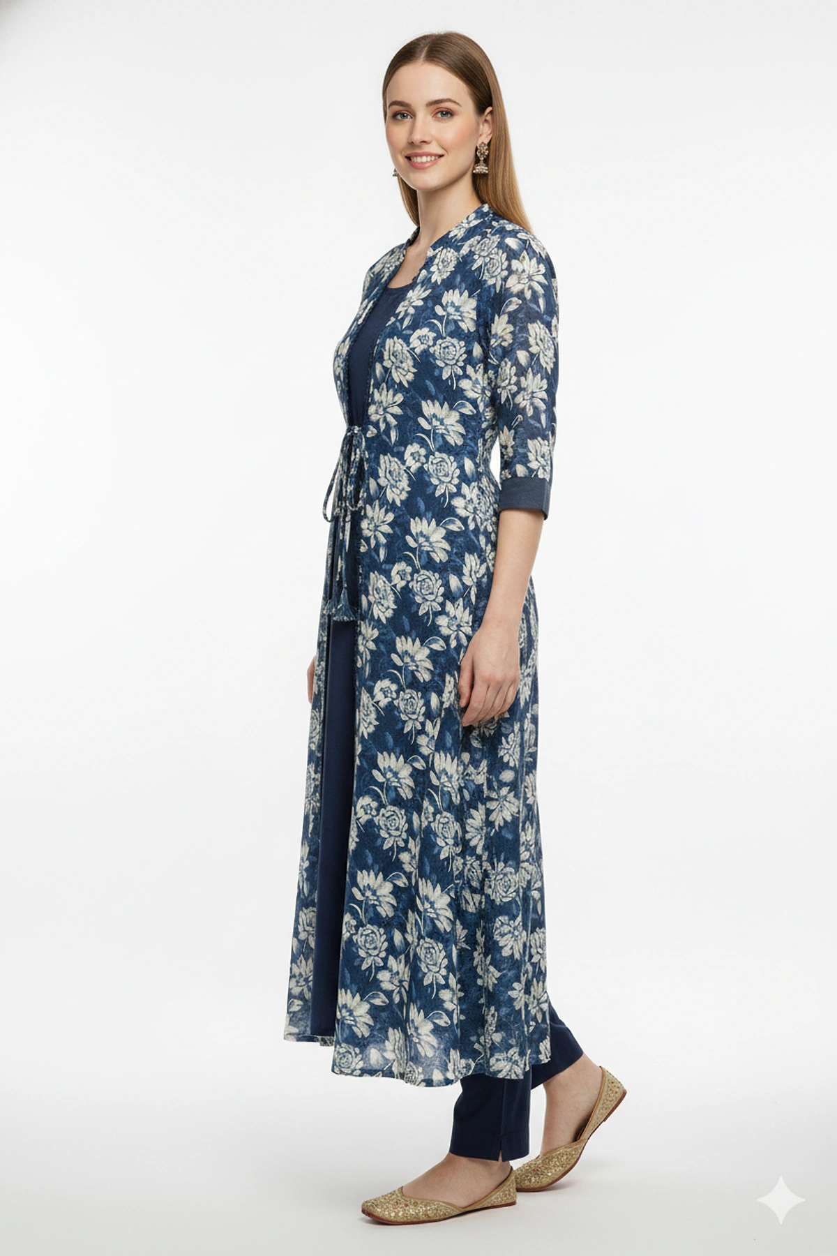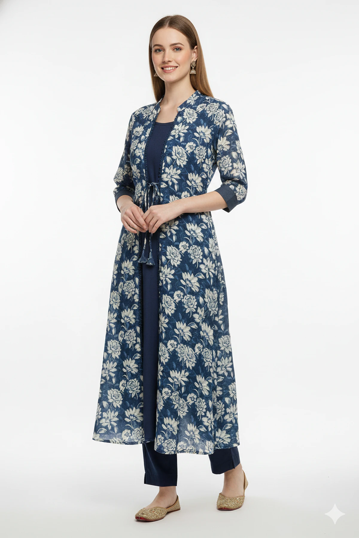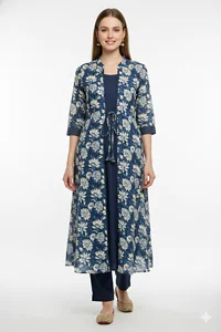 WOMEN POLYSTER JKT CALF LENGTH QUARTER SLEEVE KURTIS