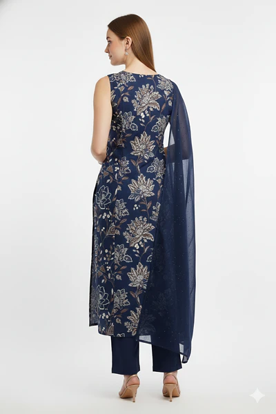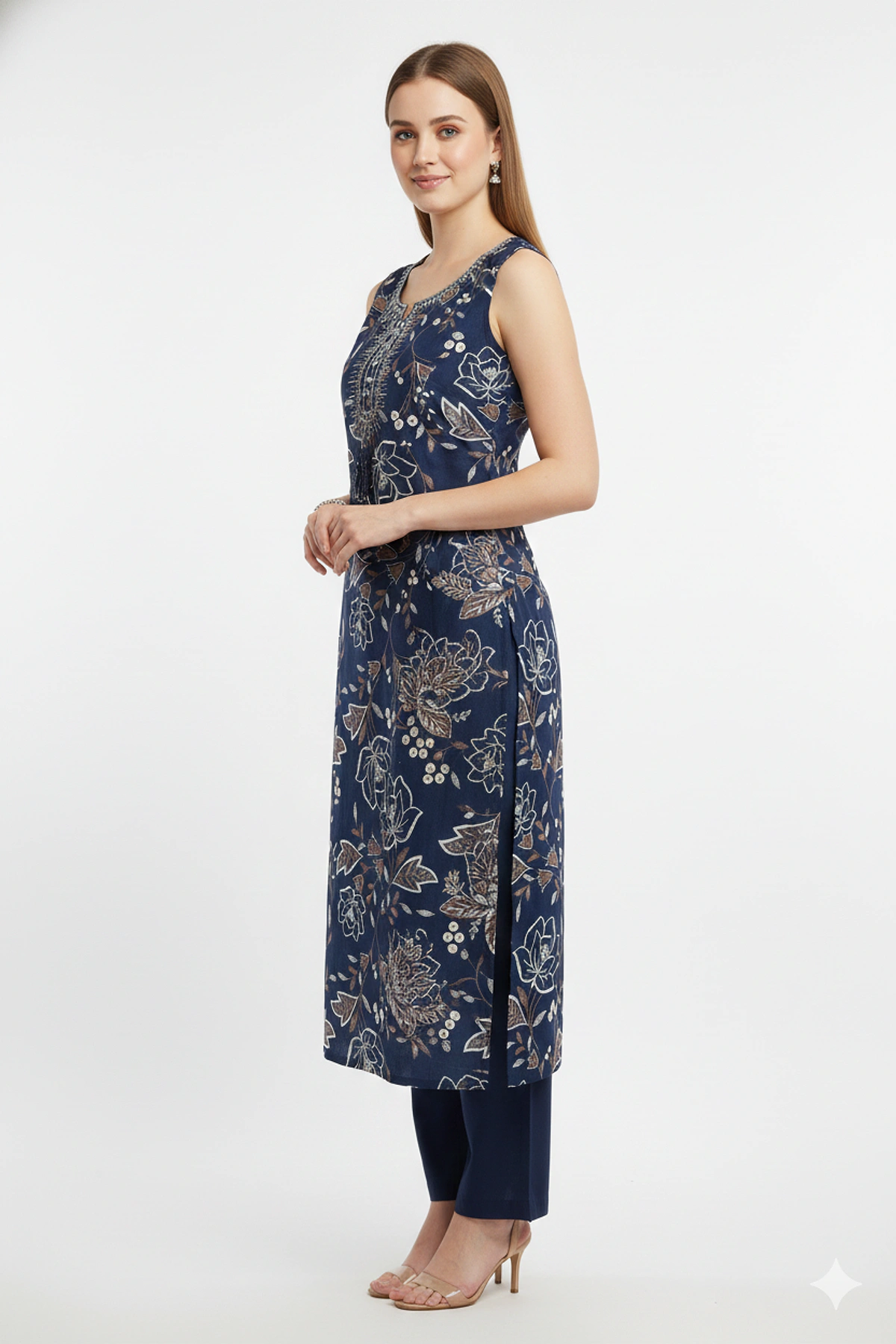 WOMEN POLYSTER SOLID CALF LENGTH SLEEVELESS KURTAS & SUITS