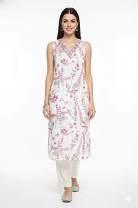 WOMEN POLYSTER V NECK SOLID KNEE LENGTH SLEEVELESS KURTIS