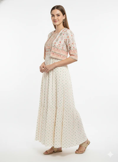 WOMEN QUARTER SLEEVE CALF LENGTH KURTIS